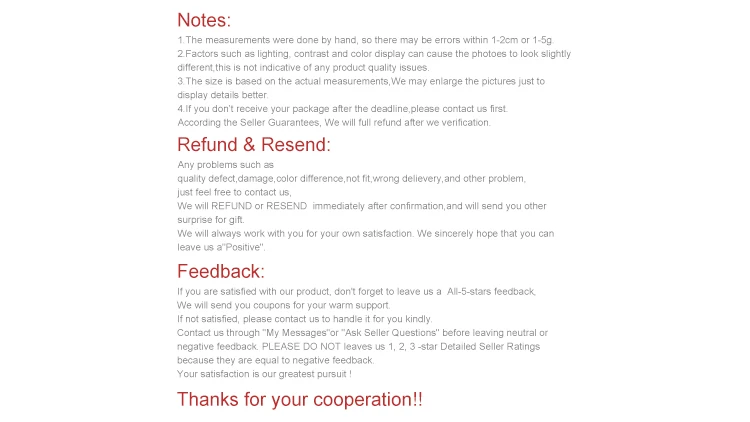 ◆Мы будемВозврат или повторная отправкаСразу же после подтверждения и вышлем вам другой товарПоднимитесь за подарок.