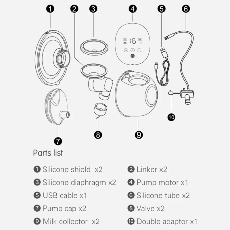 Безопасный материал: Все детали молокоотсоса изготовлены из пищевого силикона PP (без BPA) и без вредных веществ. Не беспокойтесь о возможных химических веществах, попадающих в грудное молоко матери. Поэтому вы можете быть уверены, что грудное молоко будет безопасно для вашего ребенка.