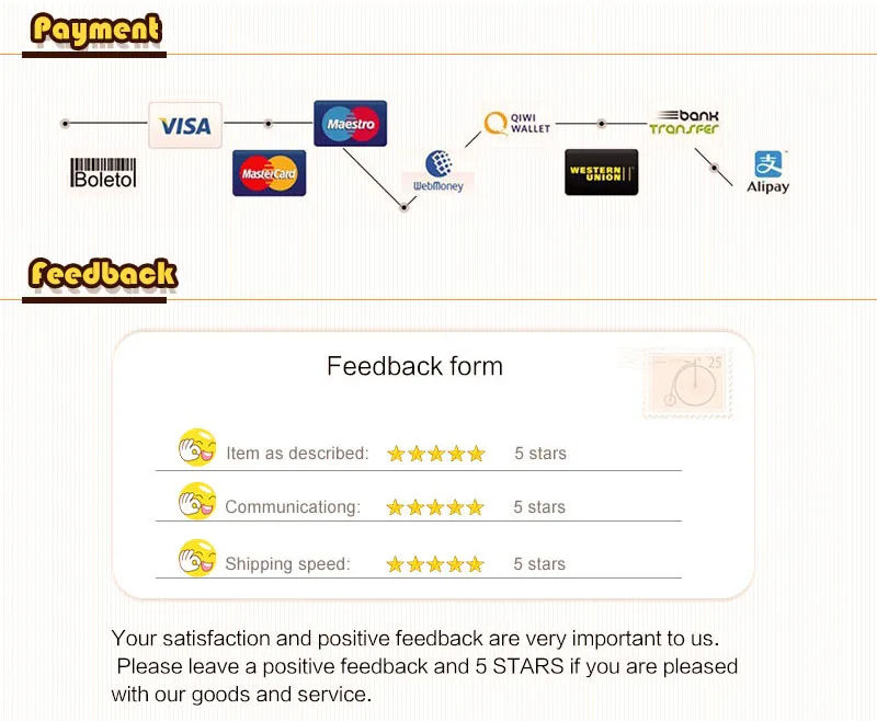 О: Ваше удовлетворение и положительные отзывы очень важны для нас. Пожалуйста, оставьте положительные отзывы и 5 звезд, если вы удовлетворены нашими товарами и услугами