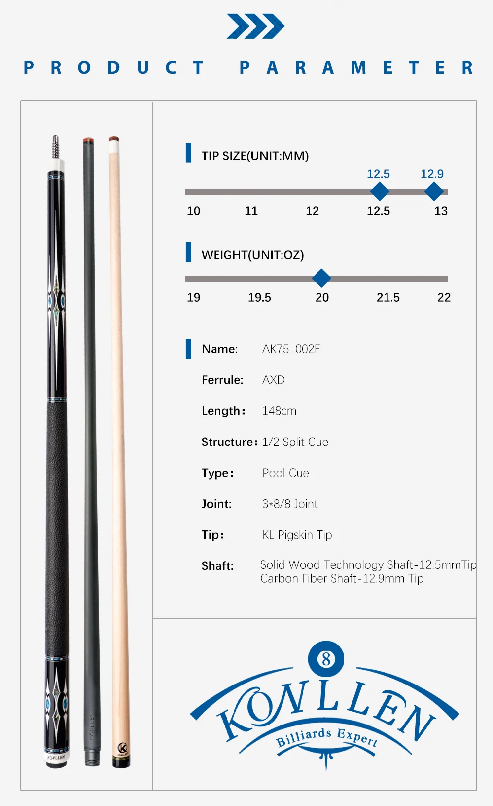 Структура: 1/2 раздельный кий