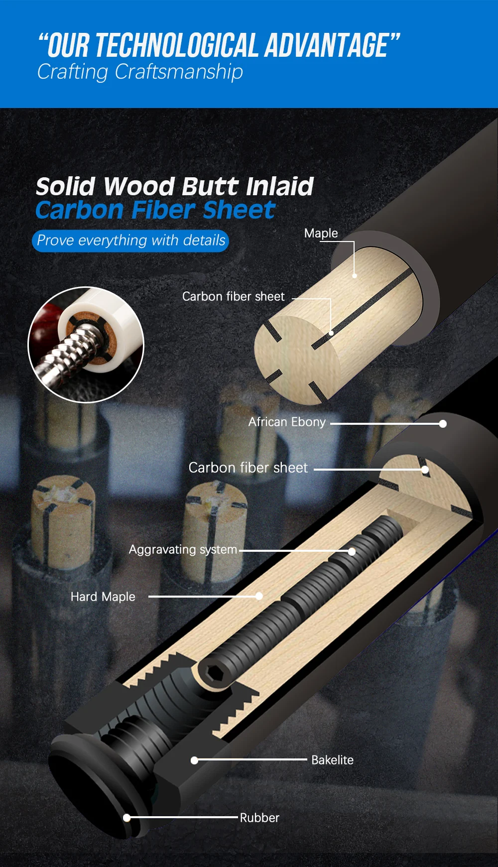 1. Древесина инкрустированная углеродным волокном Cue