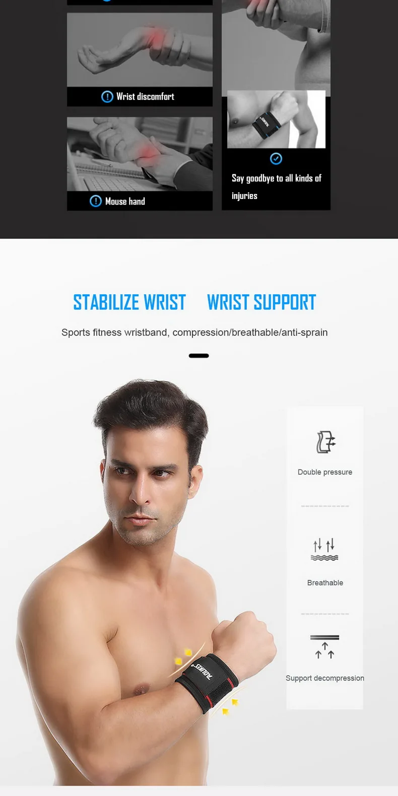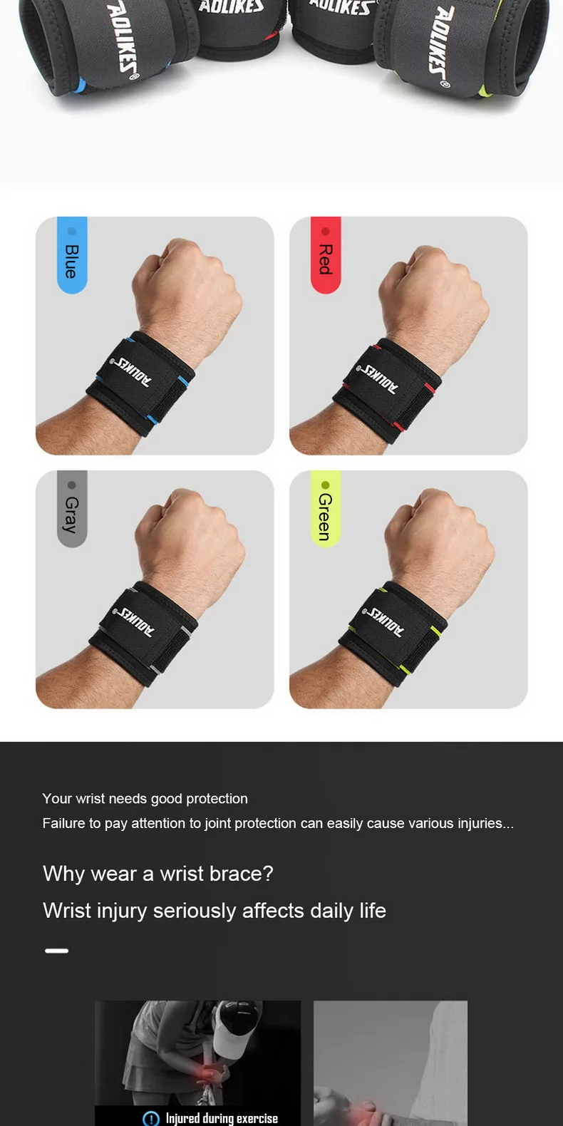 Характеристики: Материал: SBR; Цвет: черный/синий/красный/ярко-зеленый; Размер: Свободный, регулируемый Посылка входит: 1 шт. Фиксатор запястья (не 1 пара);