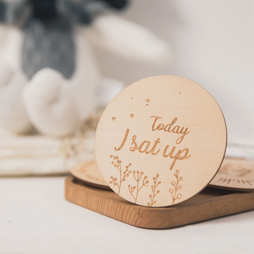 Двусторонний памятник рождения подарки веха карты печать Новорожденный Фотография реквизит игрушка Выгравированный деревянный Прорезыватель ребенка Купание подарок