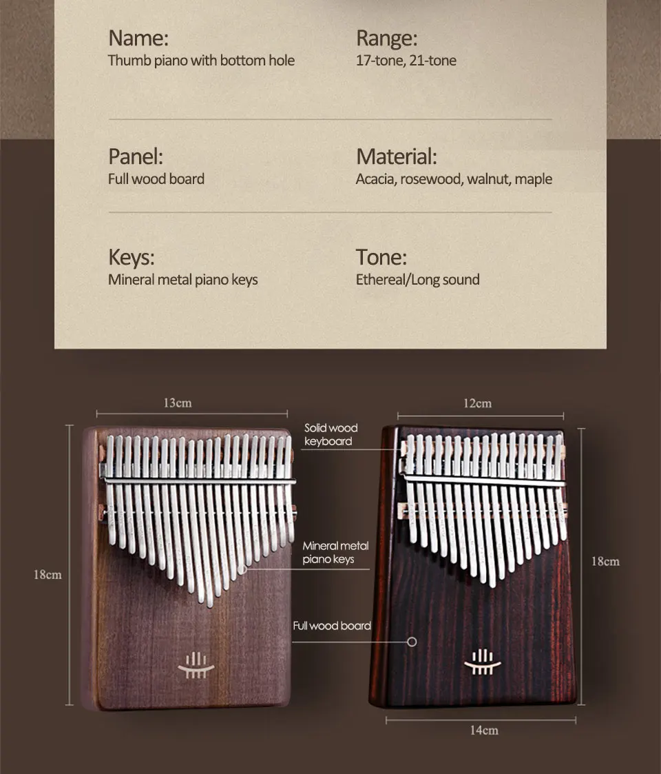 Материал: клен/Акация/грецкий орех/палисандр (опционально)Посылка: 1 х калимба1 x учебная книга1 x Tune Hammer1 х тканьНаклейка-1 шт.1 х сумка