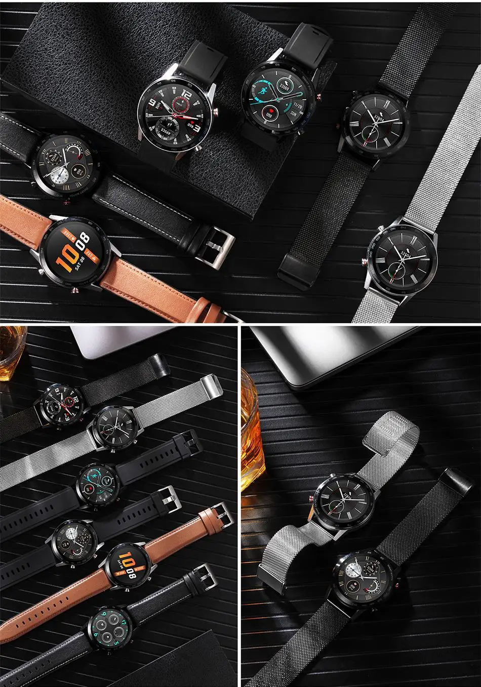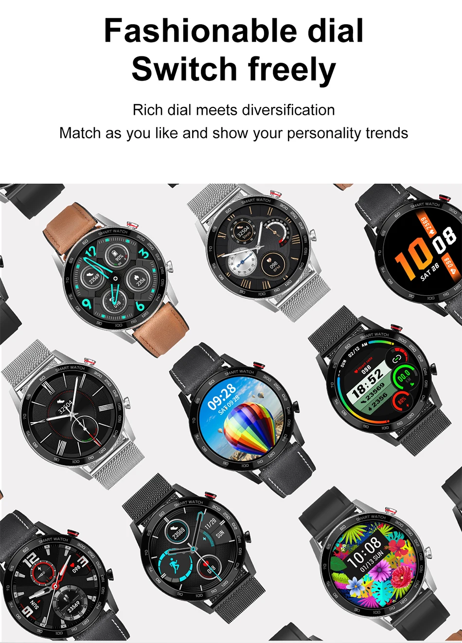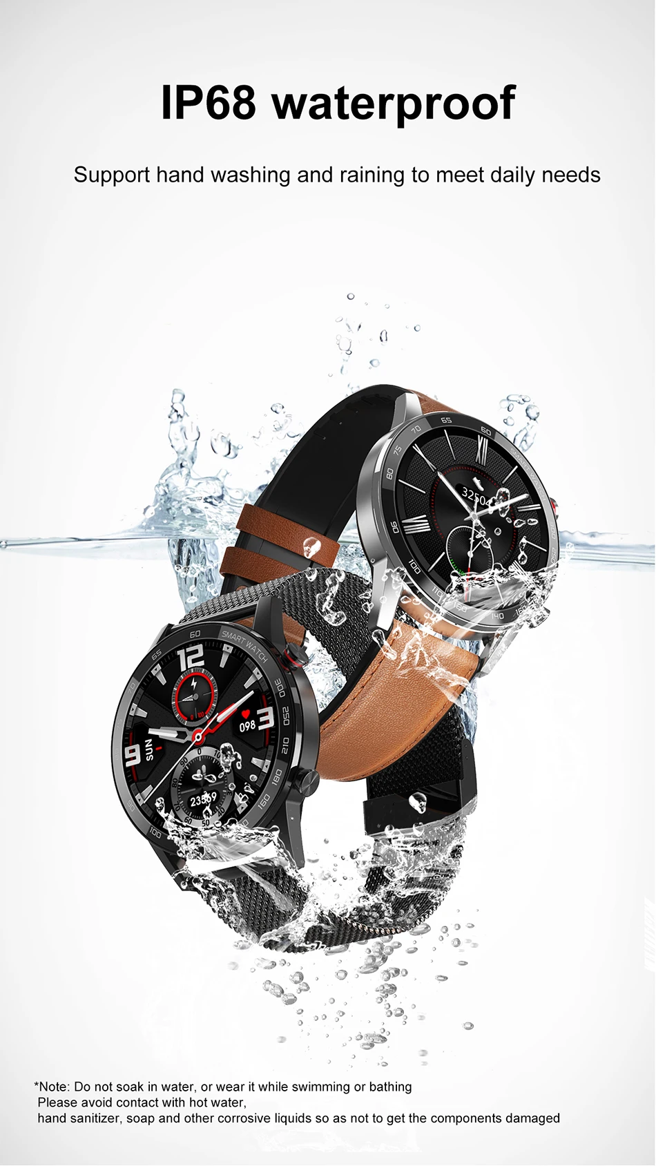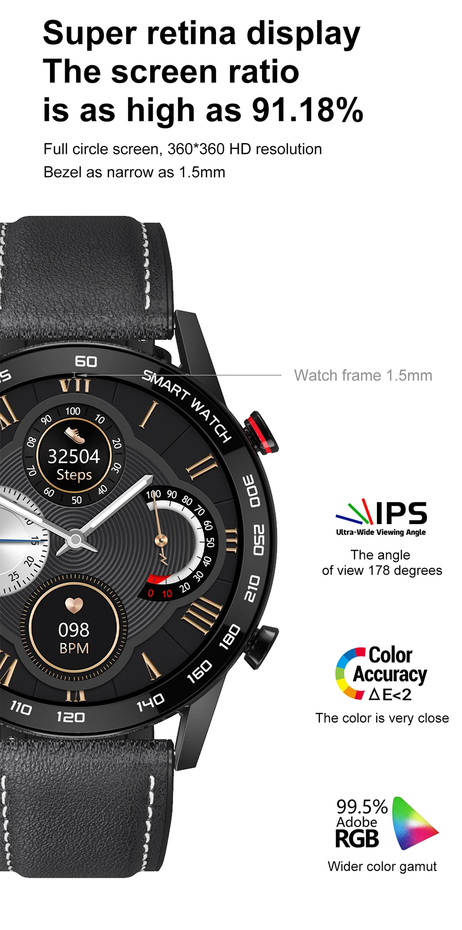 * Ключевые моменты: IP68, водонепроницаемый, 1,3 дюймов 360*360 full-fit круглый дисплей retina, 7 дней Время работы от аккумулятора