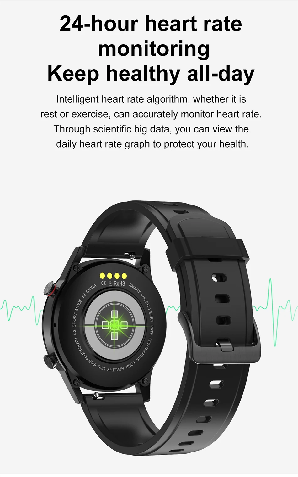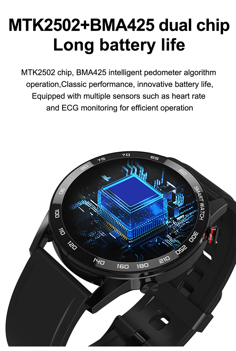 Чип MTK2502, умный алгоритм шагомера BMA425, Классическая Производительность, инновационный Срок службы батареи, оснащен несколькими датчиками, такими как пульс и контроль ЭКГ для эффективной работы