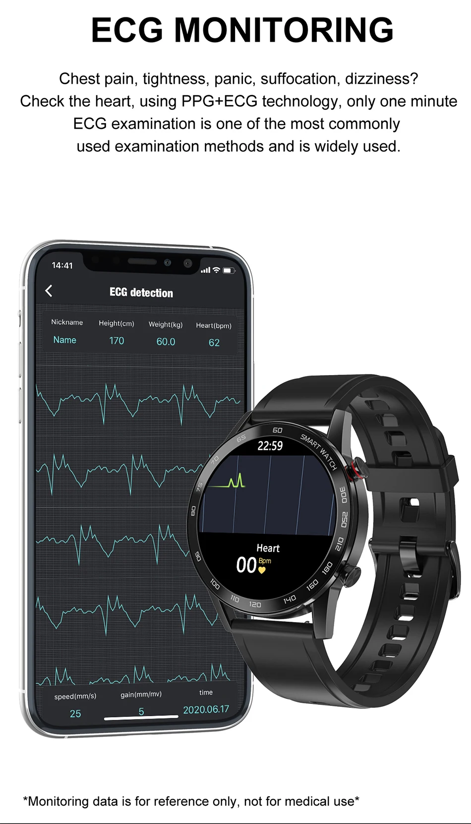 Проверьте сердце, используя технологию PPG + ECG, всего одна минута