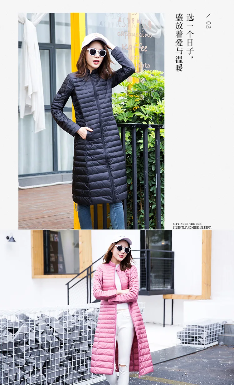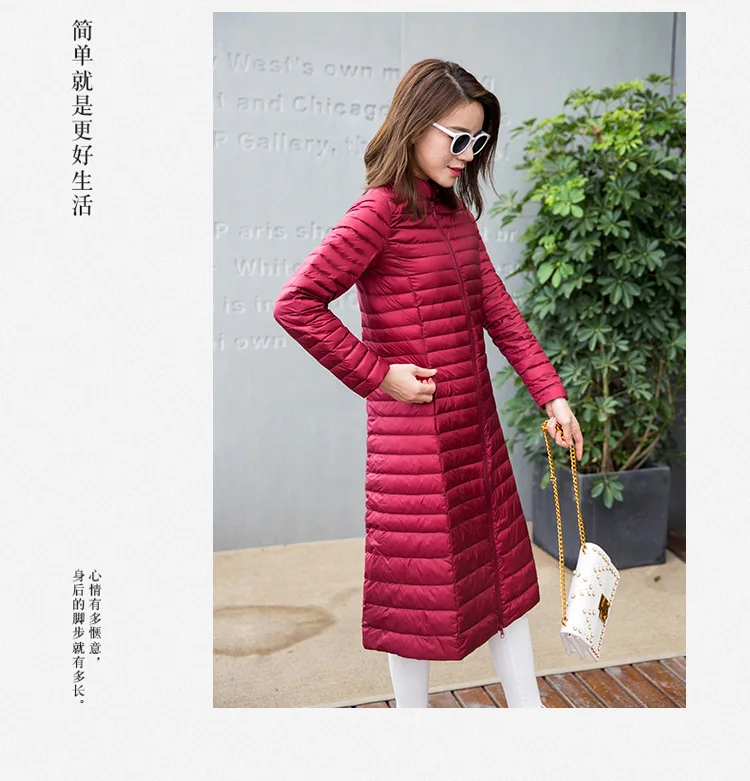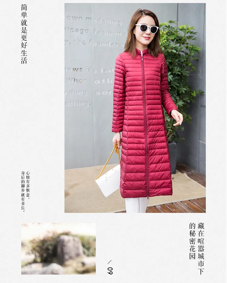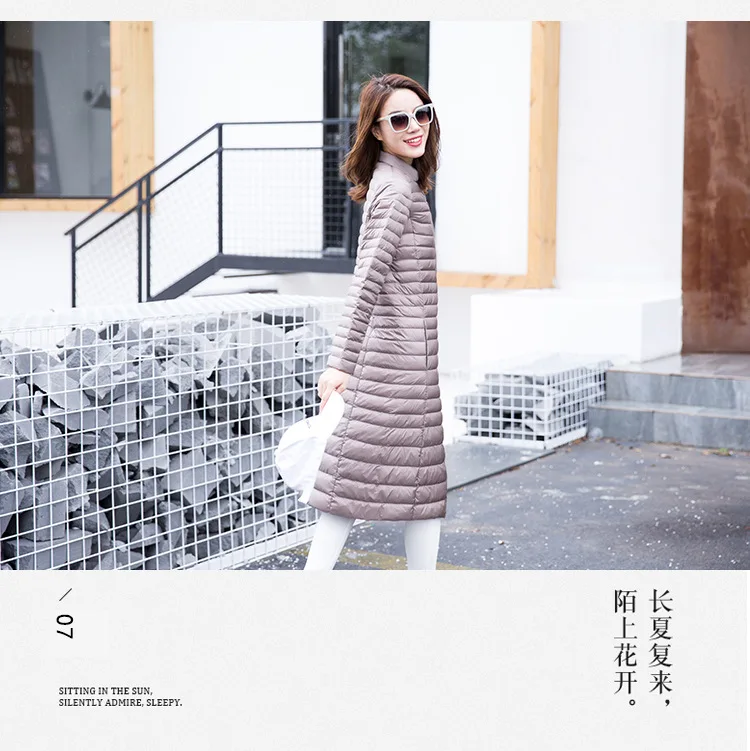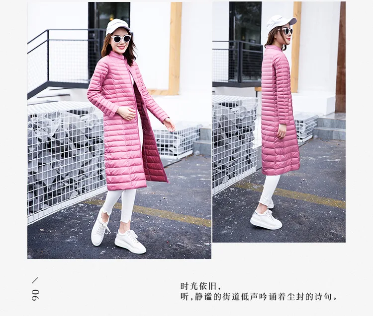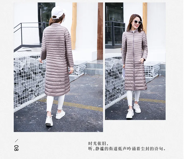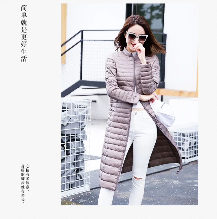 Ультра легкая осенне-зимняя женская белая длинная куртка на утином пуху, Женское пальто, тонкие однотонные куртки, пальто, портативные парки, пуховое пальто