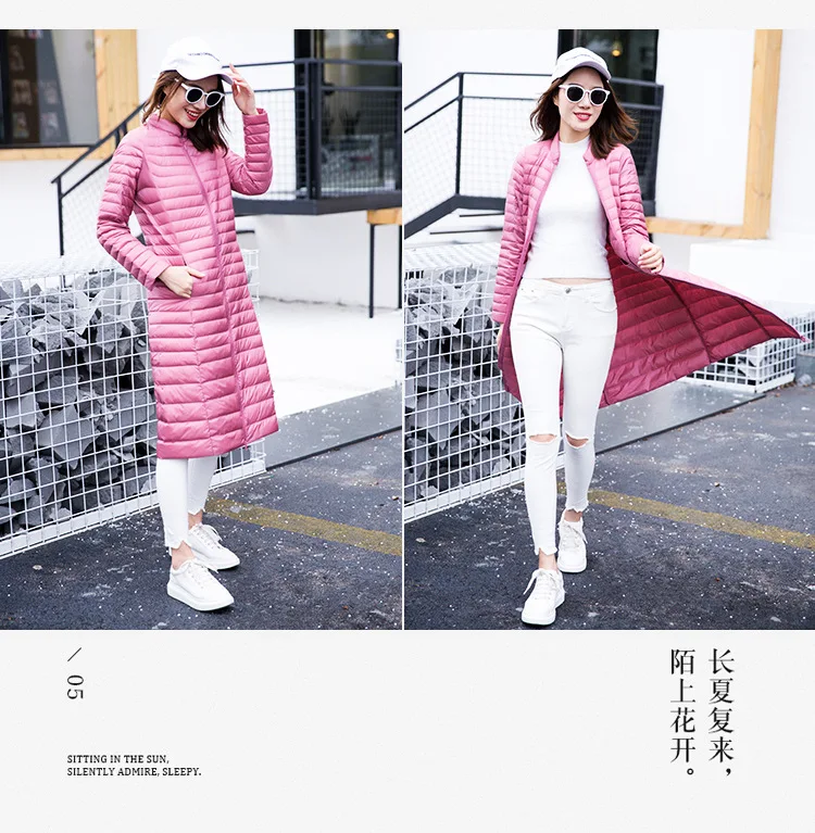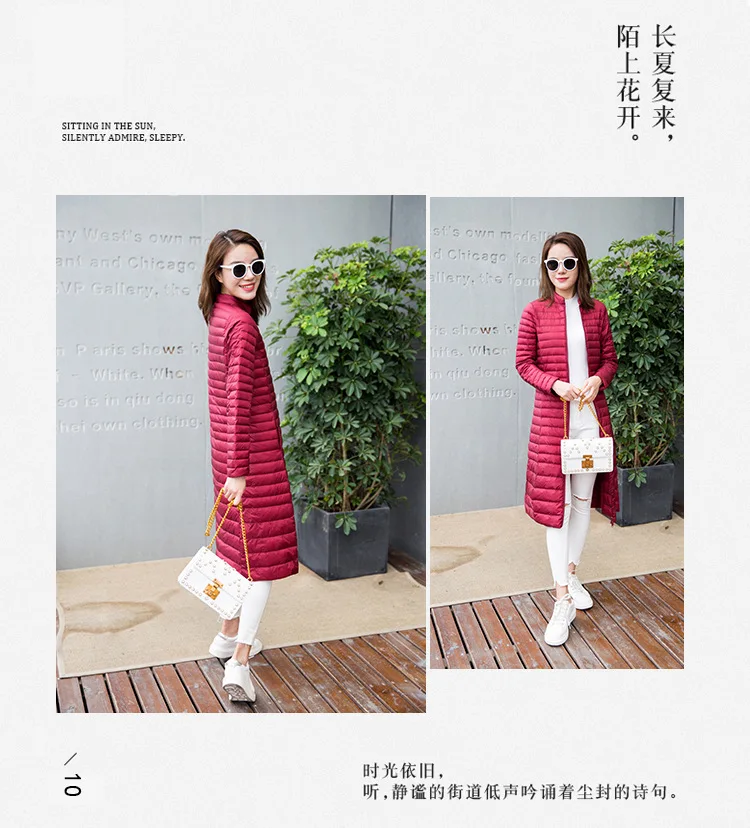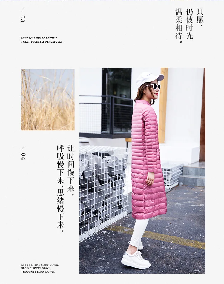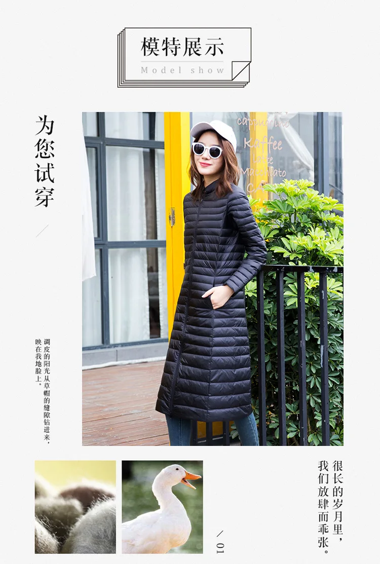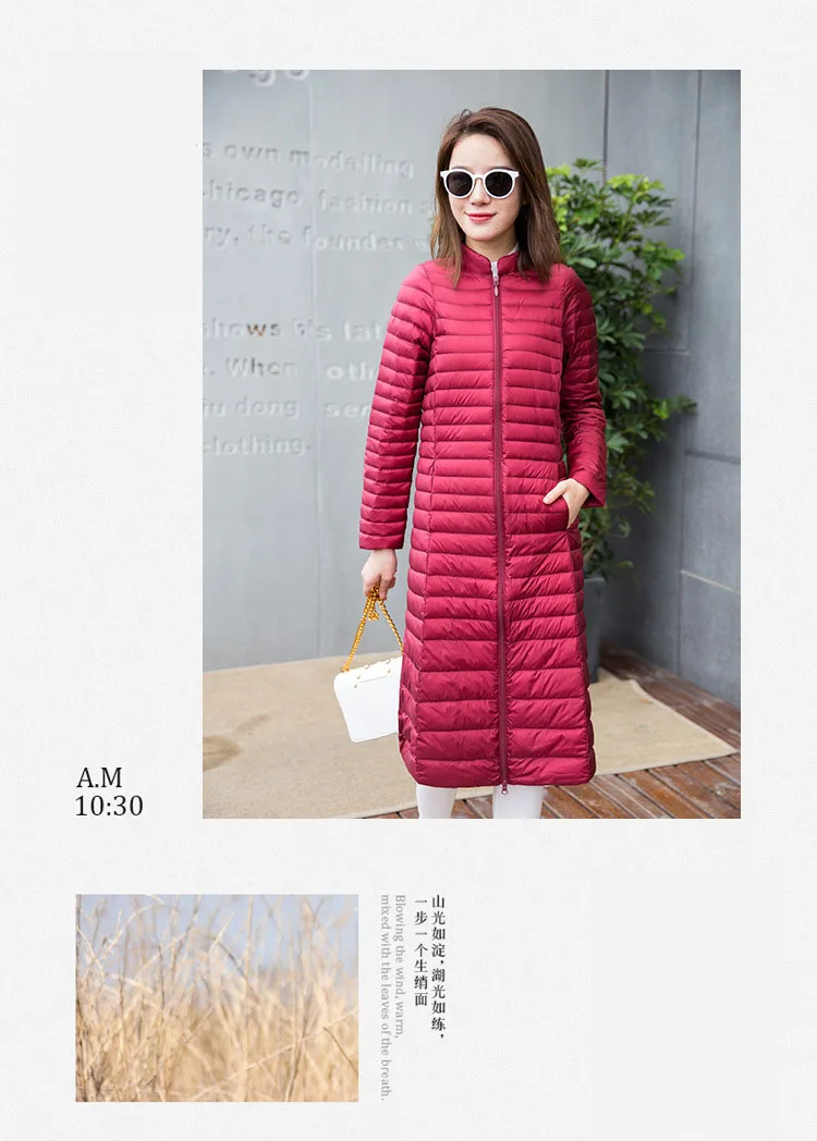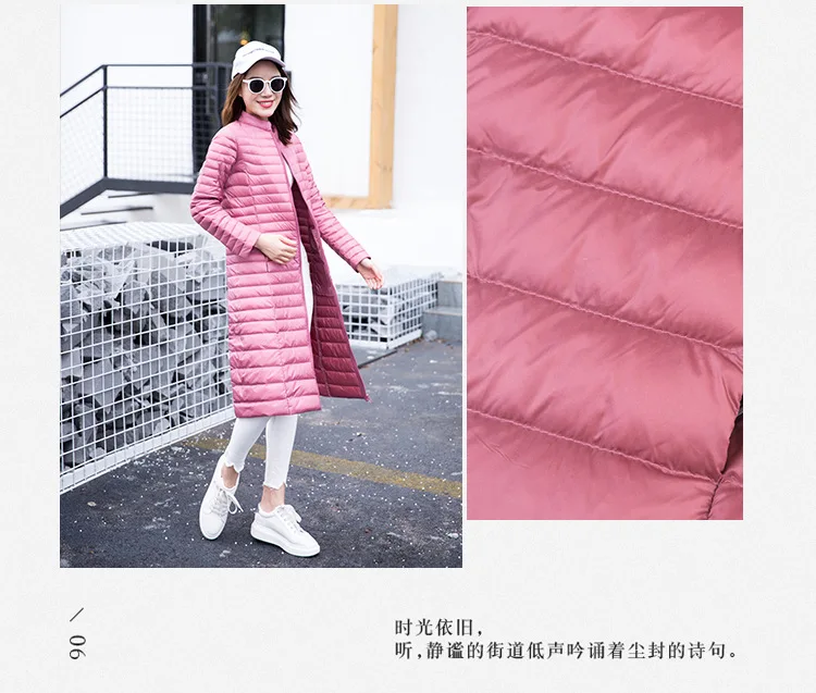 Ультра легкая осенне-зимняя женская белая длинная куртка на утином пуху, Женское пальто, тонкие однотонные куртки, пальто, портативные парки, пуховое пальто