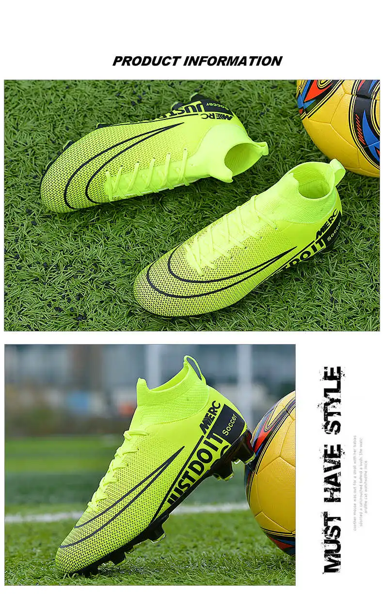 Зеленые высокие футбольные ботинки для мужчин, удобные длинные шипы, футбольные бутсы, Нескользящие износостойкие тренировочные кроссовки, Botas Futbol