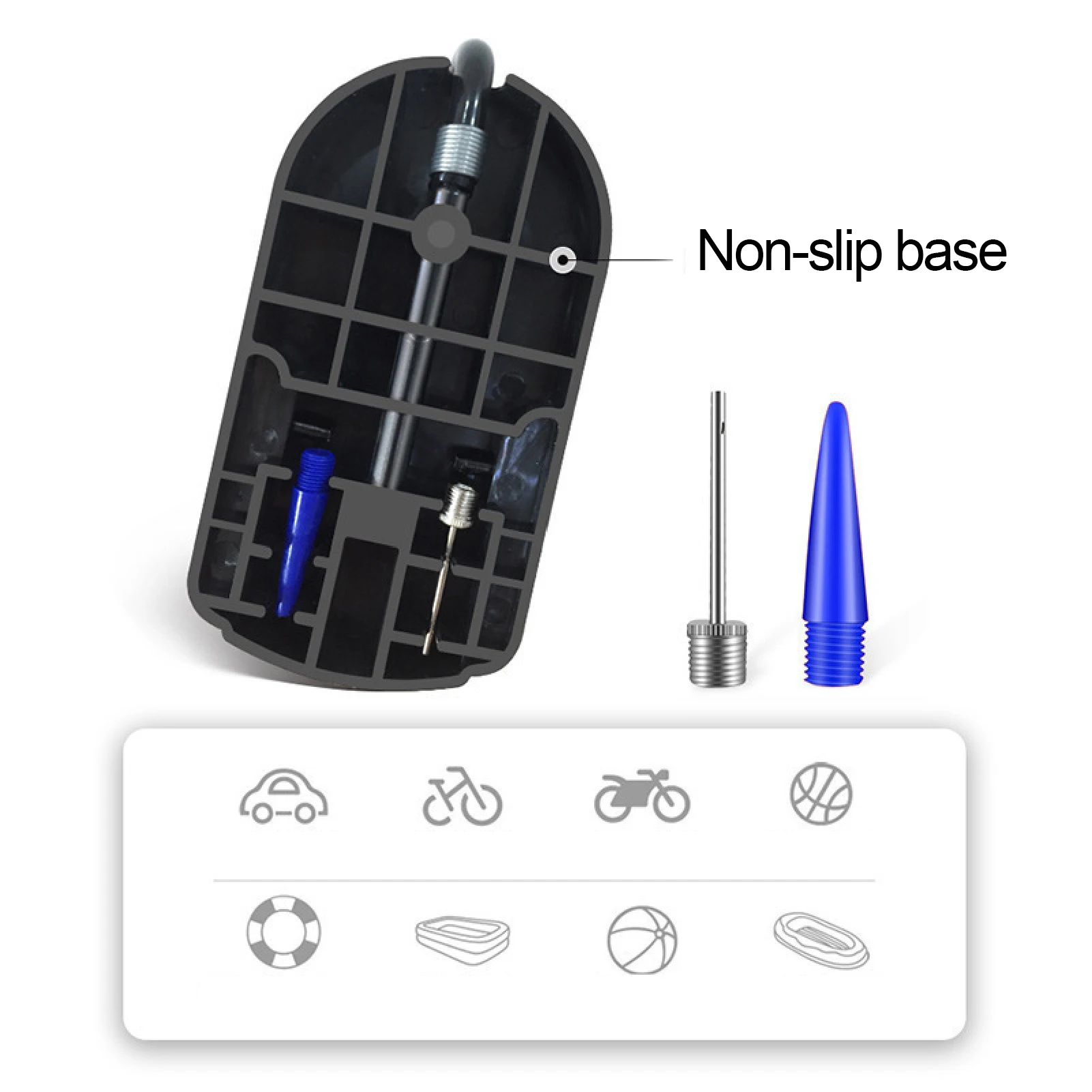 Подходит для автомобильных шин, велосипедных шин, мотоциклетных шин, баскетбола и других мячей, электромобилей, надувных бассейнов, детских надувных игрушек, надувных лодок и т. д.