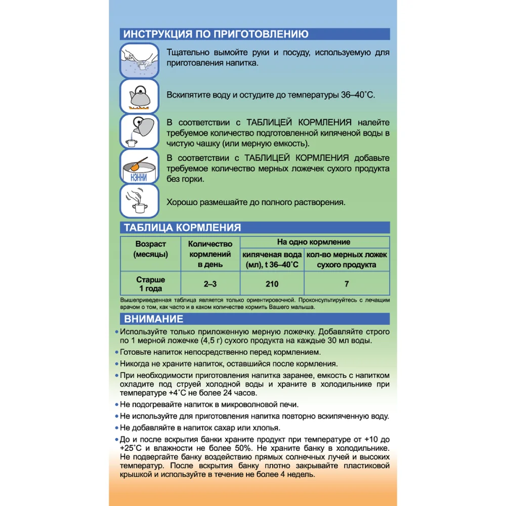 Состав продукта: молоко цельное козье сухое, лактоза, смесь растительных масел (подсолнечное, каноловое, антиокислитель [концентрат смеси токоферолов]), минеральные вещества (кальций, натрий, железо, цинк, медь, марганец, йод, селен), витамины (С, холин, Е, PP, L-карнитин, пантотеновая кислота, В12, А, К, В1, В6, В2, D, фолиевая кислота, биотин), регулятор кислотности (лимонная кислота), таурин.