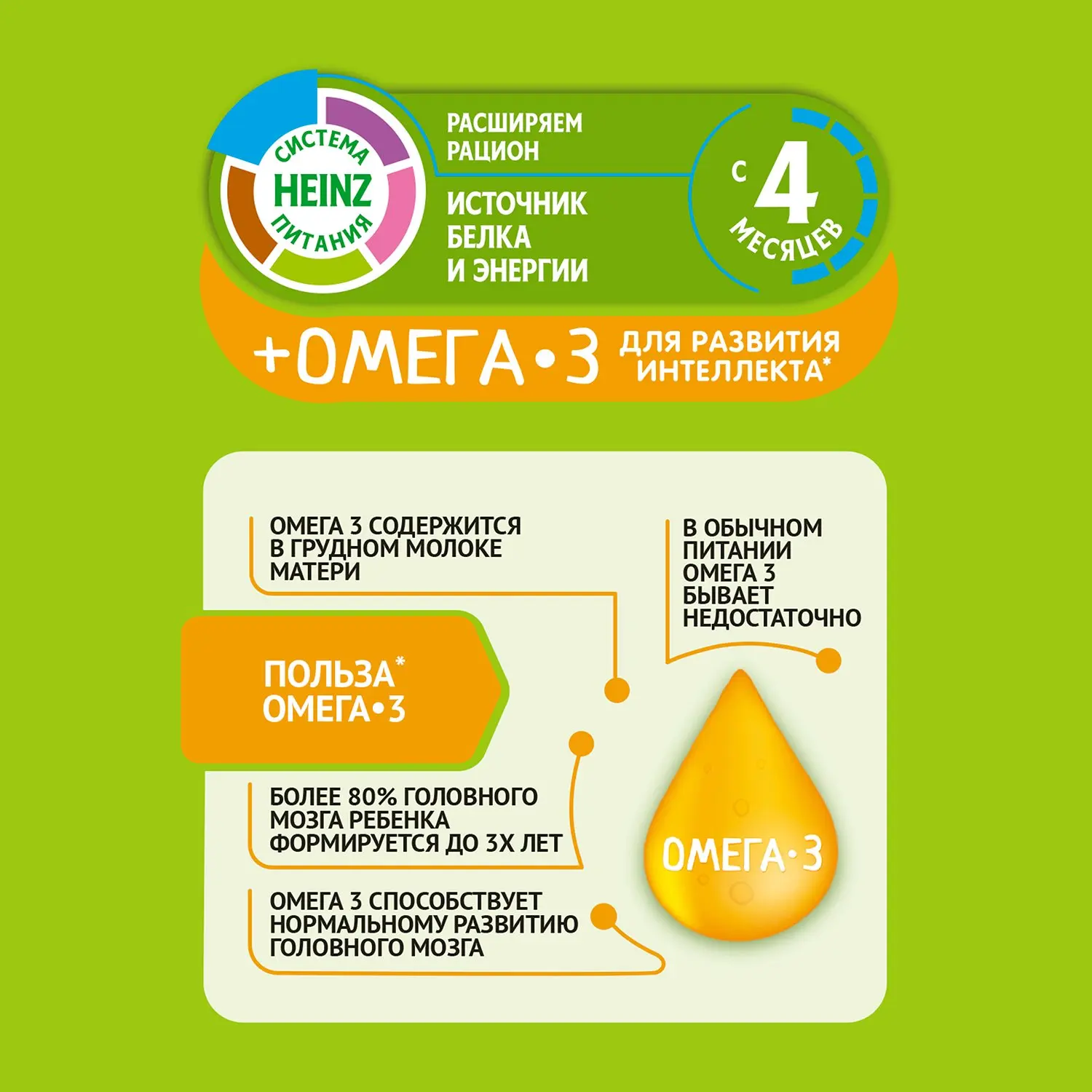 Благодаря добавлению цельного молока, кашки Heinz обладают высокой питательной ценностью, что исключительно важно для растущего организма малыша. Гречка уникальна по содержанию витаминов и микроэлементов, отличается высоким содержанием белка и клетчатки. Относится к гипоаллергенным злаковым продуктам.
