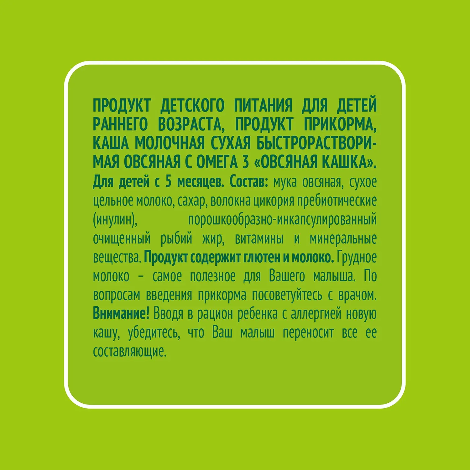 Детские овсяные каши Heinz с добавлением молока и Омега-3 разработаны с учетом пищевых потребностей детей до года. Продукция имеет высокую питательную ценность и является источником белка, участвующего в построении мышц. В составе каш — полиненасыщенные жирные кислоты Омега-3, необходимые для формирования мозговых клеток и укрепления иммунитета.