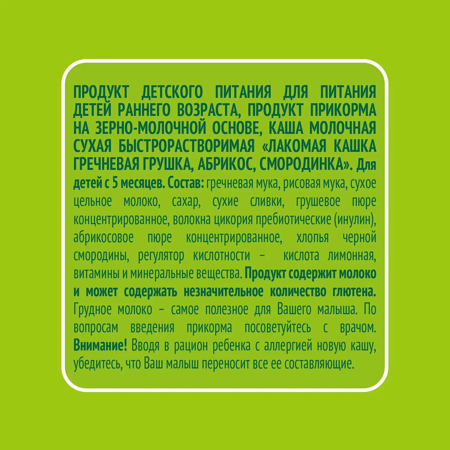 Каша Heinz Лакомая гречневая груша-абрикос-смородина 170г с 5 месяцев