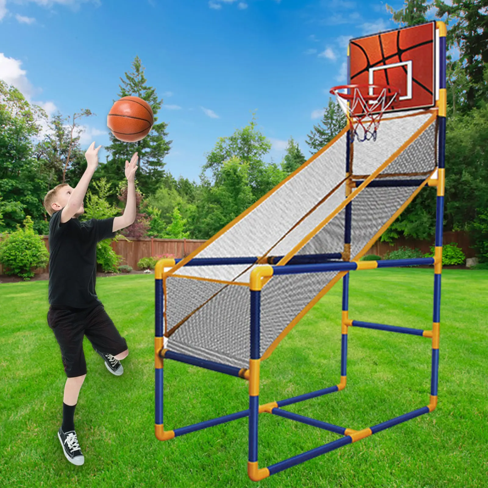 4. Хорошо подходит для практики: с нашим баскетбольным аркадным набором ваш ребенок может даже практиковать Бесплатные броски и прыгать в помещении! Ваш ребенок станет поклонником баскетбола благодаря этому набору.