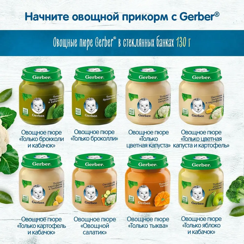 Gerber (Гербер) Пюре Только кабачки 80 г. для питания детей старше 4 месяцев согласно законодательству РФ.