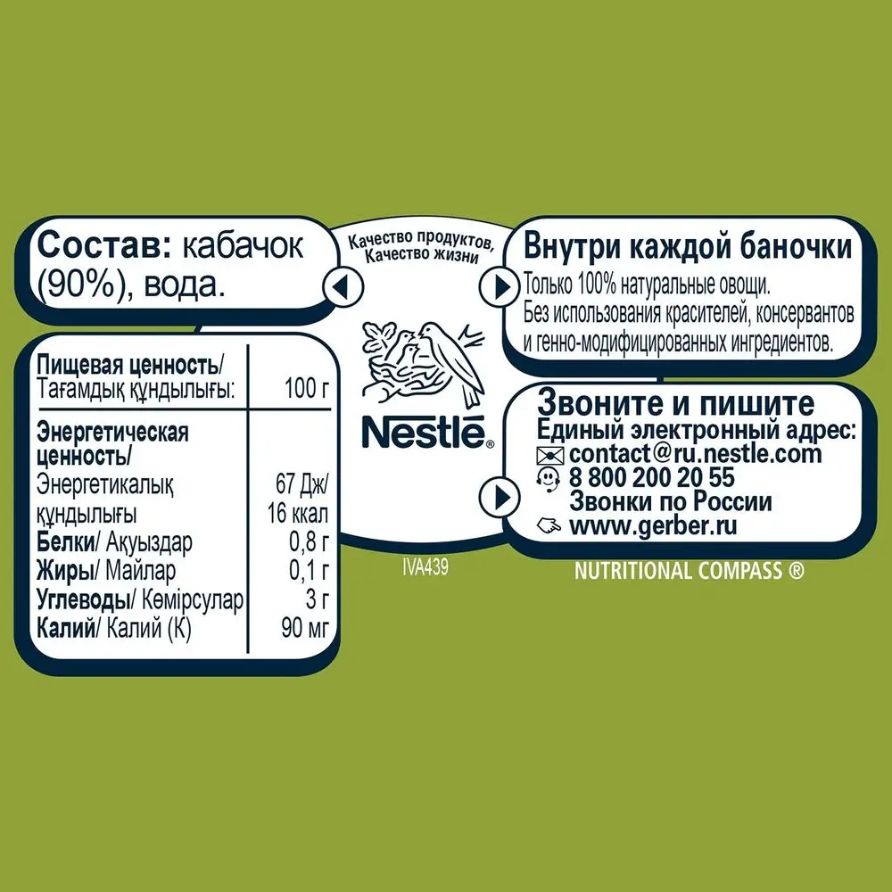 Состав: пюре из кабачков (90%), вода
