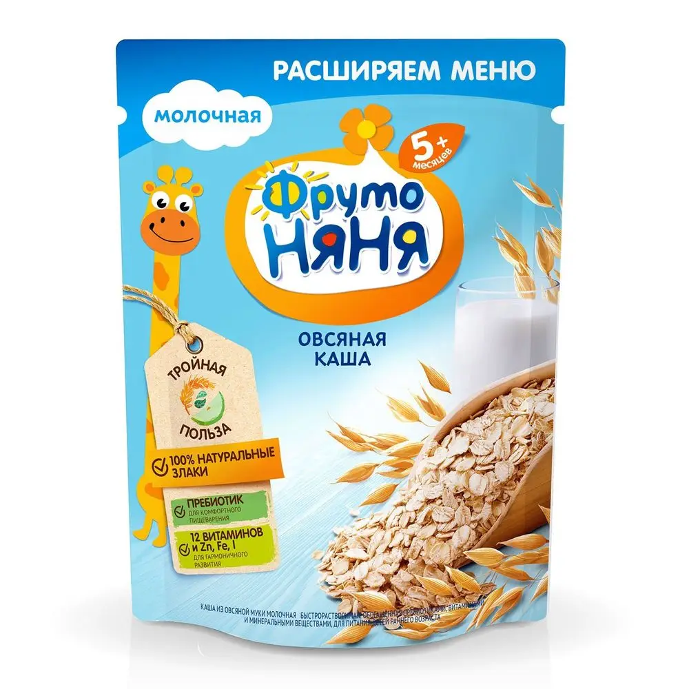 ФрутоНяня каша из овсяной муки молочная быстрорастворимая, обогащённая витаминами и минеральными веществами, для питания детей раннего возраста.