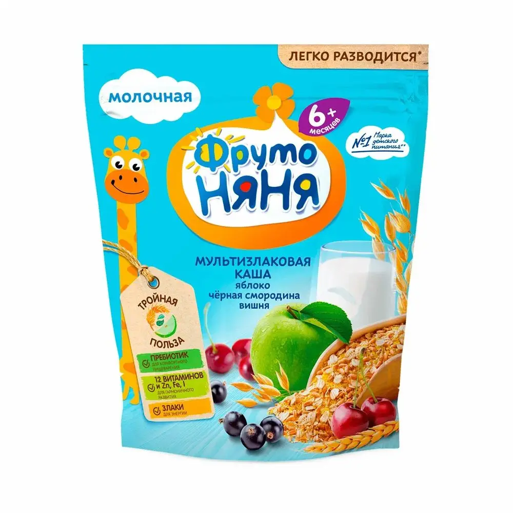 Каша молочная ФрутоНяня мультизлаковая, яблоко, черная смородина, вишня с 6 мес., 200г