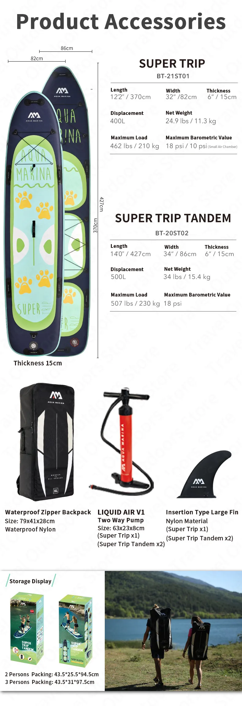 Набор I: супер трип тандем BT-21ST02 доска для серфинга + водонепроницаемый рюкзак на молнии + двухсторонний насос + комплект для ремонта + быстросъемный плавник +Полууглеродное волокно весло * 3