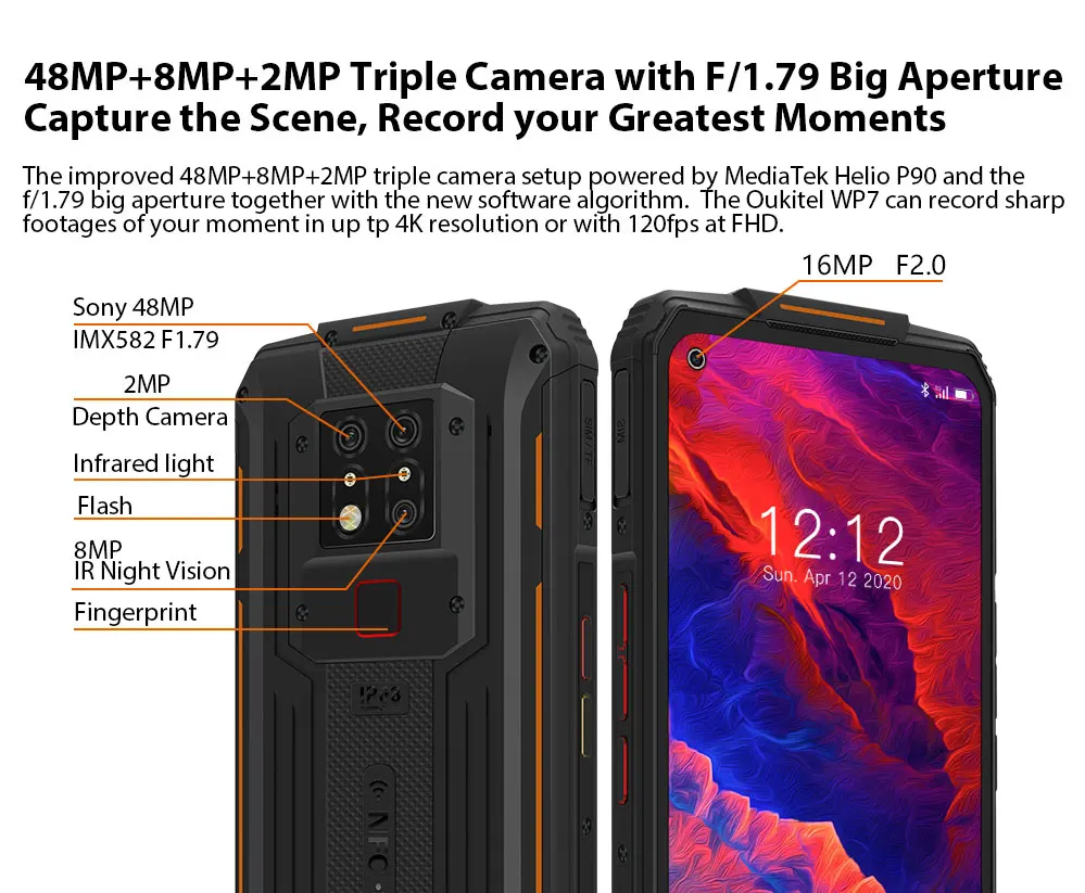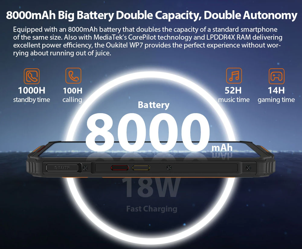 Телефон OUKITEL WP7 защищенный, мобильный телефон дюйма, 6 ГБ, 128 ГБ, 8000 мАч, 6,53 дюйма, тройная камера 48 МП, быстрая зарядка, телефон NFC