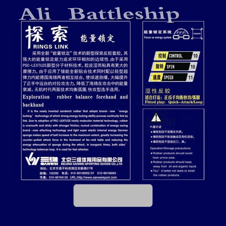 Геологоразведочная резиновая балансировка вперед и назад. Сосредоточьтесь на энергетической системе, напряжении. Это новая перевернутая сэндвич-резина, которая принимает Совершенно новая технология блокировки энергии, благодаря которой сильная блокировка энергии преследует непрерывность связи по ссылке. В связи с принятием PSC-LEXTUZE новая технология молекулярного материала, резина негладкая и липкая с сильным трением; взаимное сочетание энергосберегающей новой технологии крепления светильник легкой супер-эластичной внутренней энергии немецкой губки делает скорость мяча увеличивается в максимальной степени, Значительно увеличивает противонатянутую силу атаки в передней части дальнего среднего и уменьшает затухание энергии губки во время атаки. В неорганические времена технология обеих сторон балансирует цикл. Используется для быстрого нападающего. Встроенная игра: быстрая атака/петля Контроль: 10 Спин: 10 Скорость: 11