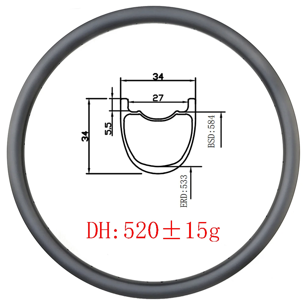 27,5 er Углеродные Диски MTB DH 34 мм x 34 мм бескамерные 24 28 32 отверстия колеса велосипеда