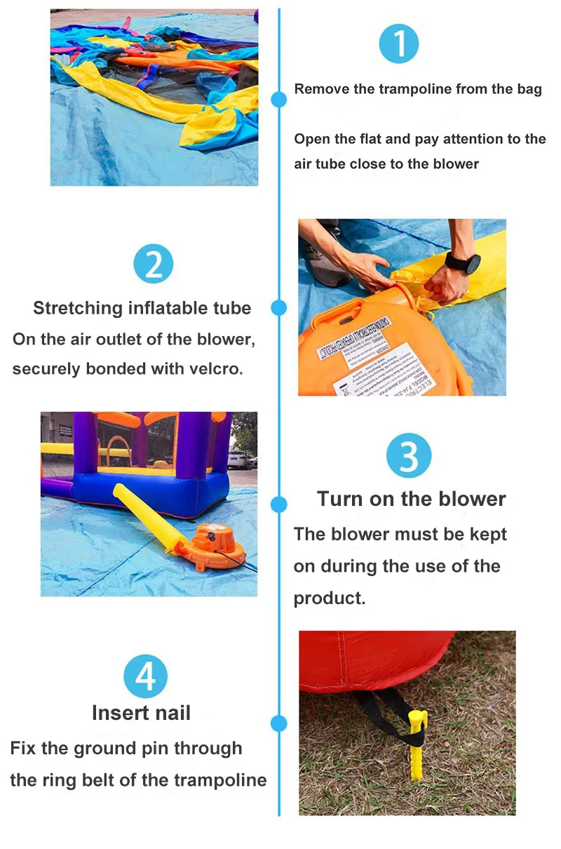 1. Идеальный подарок-надувной замок для надувного дома-это хорошее место для детей, которые будут иметь больше счастья в течение часа на день рождения, в дни игры друзей и на ежедневные развлечения 2. Прочное и прочное качество-двойной шов для швов из прочного материала 3. Быстрая инфляция идет с инструкцией, надувает надувной дом менее 2 минут, держать вентилятор работает во время игры детей 4. Легко хранить и переносить-быстро сдувать надувные менее 2 минут, можно носить в любом месте удобно с поставляемой сумкой или хранить ее, когда не используется 5. В комплект входит сверхмощный и водонепроницаемый воздуходувка