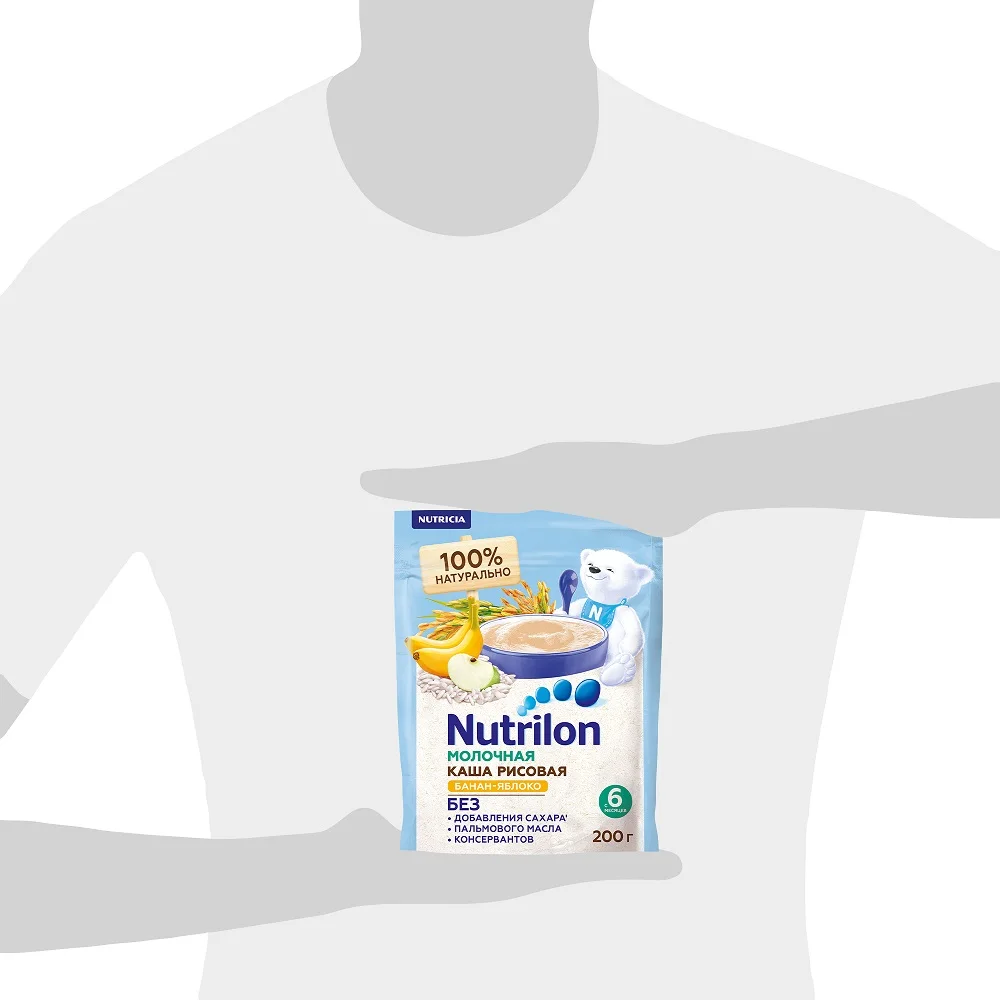 Каша молочная сухая быстрорастворимая рисовая с бананом и яблоком Nutrilon, для питания детей с 6 месяцев