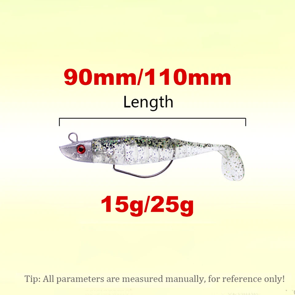 Характеристики: Тип: приманки из свинца Материал: силикон/приманки из свинца Длина: 56 мм/90 мм/110 мм/115 мм Вес: 7,6 г/14 г/15 г/25g Цвет: 17 различных цветов Характеристика: силикон/свинцовый крючок Целевая рыба: травяной карп, прогулочный сом, бас, форель Посылка: 1 комплект * приманки из свинца