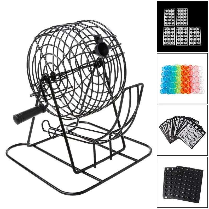 【Полный набор 】: Этот набор бинго включает в себя 15 черно-белых карт бинго, 150 чипов бинго в 5 цветах: желтый, прозрачный, синий, зеленый и красный, 1 доска бинго, черная клетка из кованого железа с порошковым покрытием и 75 белых пластиковых пронумерованных шариков.