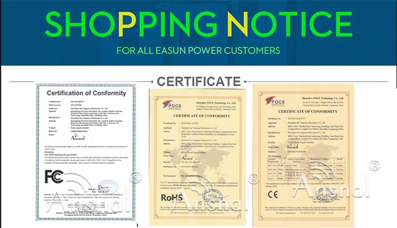 Сертификат CE. 100% контроль качества перед отправкой. Стандартная гарантия на 1 год Гарантия распространяется только на товары, которые считаются потерявшими неудачу при нормальном использовании. Случайные повреждения из-за экологических причин или неправильного использования и установки не будут покрыты гарантией (но все еще пригодны для эксплуатации Мы предоставляем бесплатный усилитель сигнала во время гарантии, но покупатель должен оплатить стоимость доставки. Свяжитесь с нами для получения гарантии Покупатель несет ответственность за гарантию возврата.
