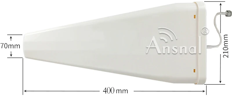 Это универсальная Наружная и внутренняя антенна, она поддерживает частоту между 800 МГц ~ 2700 МГц, она совместима с GSM900MHz /CDMA850MHz /DCS1800MHz /3G 2100MHz /WLAN 2,4 GHz./LTE2600MHZ Получите до 10/12 дБи, подходит для больших домов и рабочих мест. Частотные полосы покрытия: -CDMA850MHz, -GSM900MHz, -DCS1800MHz, -PCS1900MHz, -UMTS2100MHz -LTE2600MHZ. Характеристики: Частота: 698 ~ 2700 МГц Коэффициент усиления dBi :10/12 Ширина луча H:65/50 в: 55/40 КСВН менее 1,5 Входное сопротивление-50 Вертикальная поляризация Максимальная мощность-Вт 50 Молниезащита постоянного тока Модель разъема N-Female Размер 400x210 x65мм