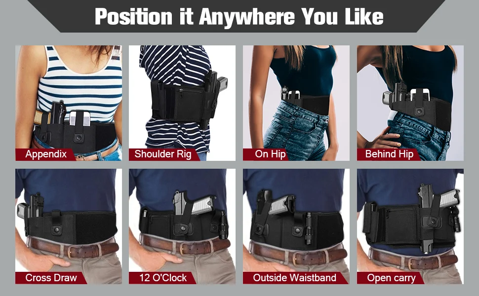★【Расположите его в любом месте, которое вам нравится 】 дизайн кобуры для живота может поворачиваться для работы как правой, так и левой рукой в любом положении вокруг талии, груди, аппендикуляции, крепкого бокового бедра, сзади бедра, маленькая задняя часть, перекрещивание или даже OWB переноска. Вы можете носить его практически в любой ситуации!