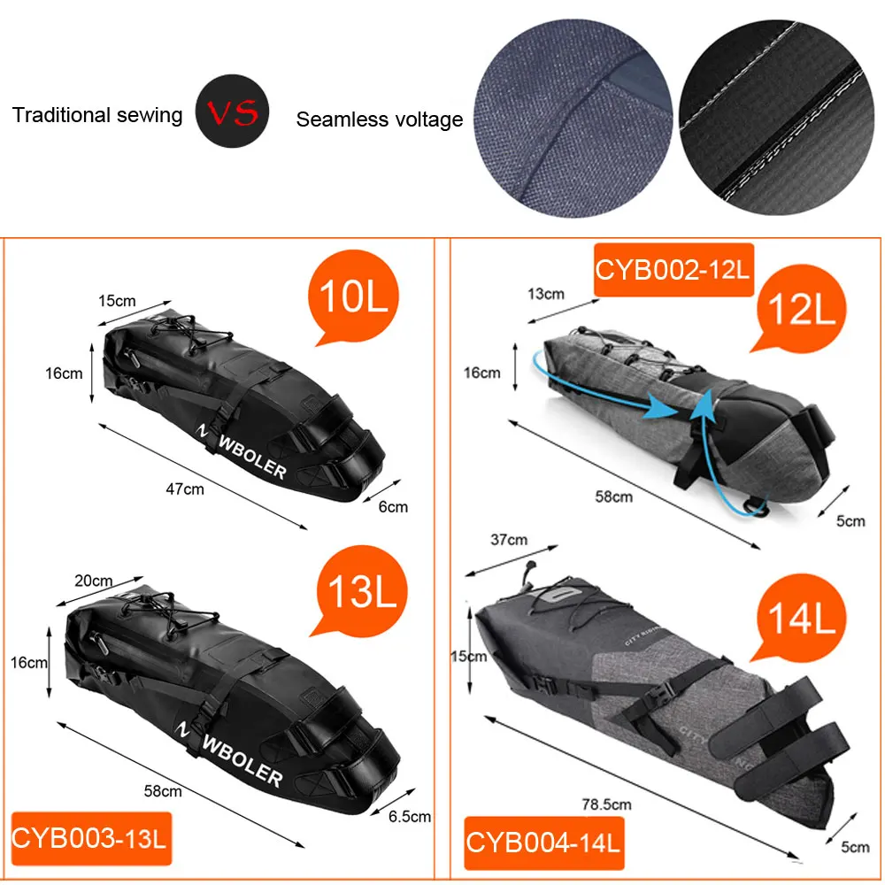 100% Водонепроницаемый Светоотражающая велосипедная сумка 10L/12L/13/14L большой Ёмкость седельная сумка Велоспорт складной хвост сзади сумка MTB дорожный велосипед багажник сумка для велосипеда
