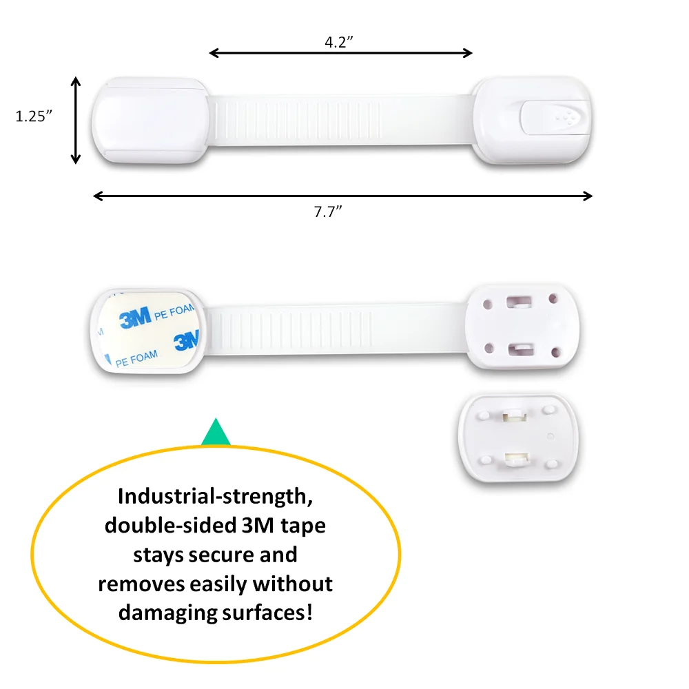 Об этом товаре Предупреждение-удушье-дети до 3 лет Эта игрушка не подходит для детей в возрасте до 3 лет. Он содержит один или несколько следующих элементов мрамора; Маленький шар; Или небольшие части. Регулируемые безопасные замки для детей, 8 упаковок безопасности для детей: эти замки для детских шкафов защищают мебель, приборы и двери для защиты вашего ребенка от вреда: кухня (замки для шкафов, замки для ящиков, холодильник, морозильная камера, посудомоечная машина, микроволновая печь, мусорное ведро), прачечная (стиральная машина, сушилка, корзины для белья), ванная комната (Шкафы, душевые двери, сиденье для унитаза), спальня (ящики, шкафы, столы). Простота в использовании: Babylock ваш дом с инновационным дизайном push и slide позволяет вам простой, с одной рукой доступ к ремешку. Быстрая установка, нет необходимых инструментов: детские шкафы с промышленной прочностью 3 м пенопластовая лента, которая вмещает до 55 фунтов. Для сверхмощного повседневного использования. Чего вы ждете? Регулируемая детская Безопасность замки, комплект из 8 шт. тряпок-Защёлки для того, чтобы официально утвержденная безопасная для детей и детские шкафы доказательства, Приспособления, ящики с Экстра прочный клейкую ленту 3м является идеальным для проверки товара для вашего дома. Мы гарантируем это. Предупреждение: Этот продукт является сдерживающим фактором. Этот продукт не является заменой для просмотра ваших детей. Спецификация: Цвет Белый Размеры собранного изделия (Д x Ш x В) 8,00x1,00x1,00 дюймов Посылка: 8 замков