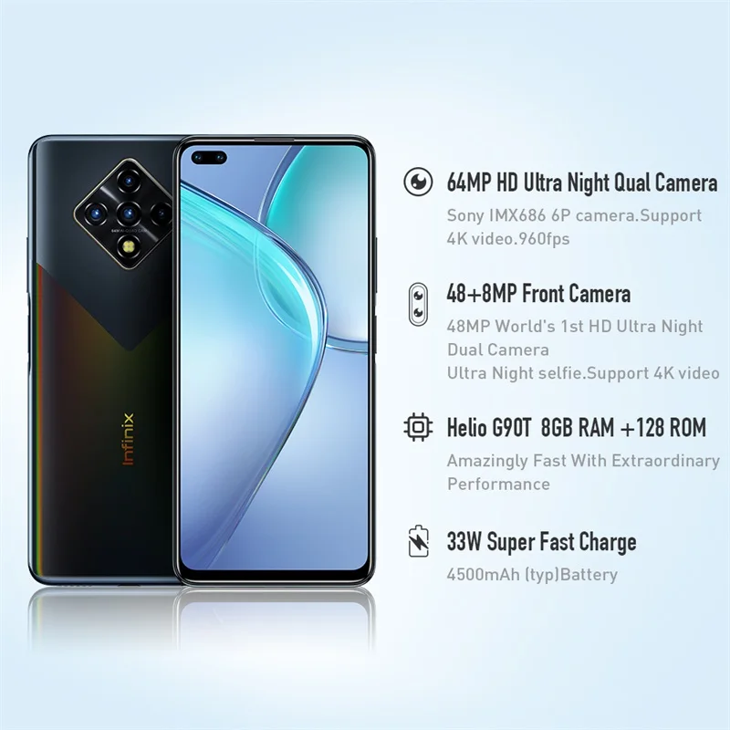 ОЗУ + ПЗУ: 8 ГБ + 128 Гб; Поддержка tf-карты до 2T Гб ЦП: Восьмиядерный процессор Helio G90T; GPU:Mali-G76 MC4 Экран: 6,85 ''; Частота обновления 90 Гц; Частота дискретизации касания 180 Гц; Полноэкранный дисплей; FHD + 2460*1080P Камера: 64MP(IMX686)+ 8MP + 2MP + 2MPQuadRear камера; Фронтальная камера (48MP + 8MP) Аккумулятор: аккумулятор 4500(typ) мАч; Быстрая зарядка 33 Вт ОС: Глобальные версии, поддержка обновления OTA, на базе android 10,0 Другое: до 2TGB TF карта, WIFIIEEE 802,11 a/b/g/n,Bluetooth 5,0, OTG,AI Face unlock, fm-радио Датчики: отпечатков пальцев; G-SENSORYES; E-COMPASSYES; Гироскопические глаза; Датчик освещенности; Датчик приближения Сеть: Full Netcom, Dual SIM Dual Standby(Nano SIM слоты x 2 + слот для карты Micro-SD x 1) 4G:FDD: B1/B3/B5/B8/ B7/B20 ; TDD: B38/B40/B41 3G:WCDMA: B1/B5/B8 2G:GSM: B2/B3/B5/B8