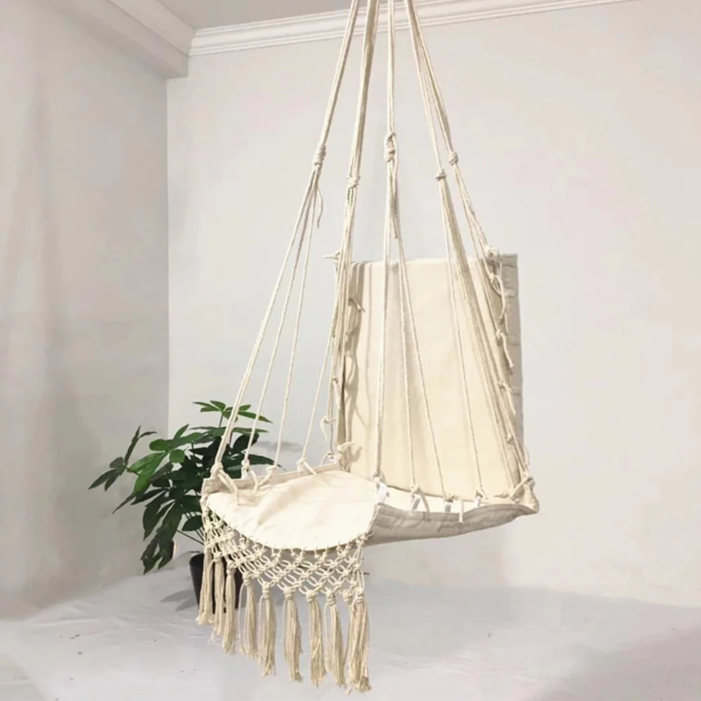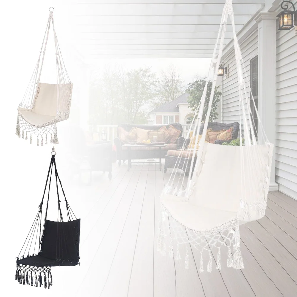 Холст качели висит гамак Хлопок Веревка кисточка дерево стул патио открытый Крытый сад спальня безопасность Висячие стулья