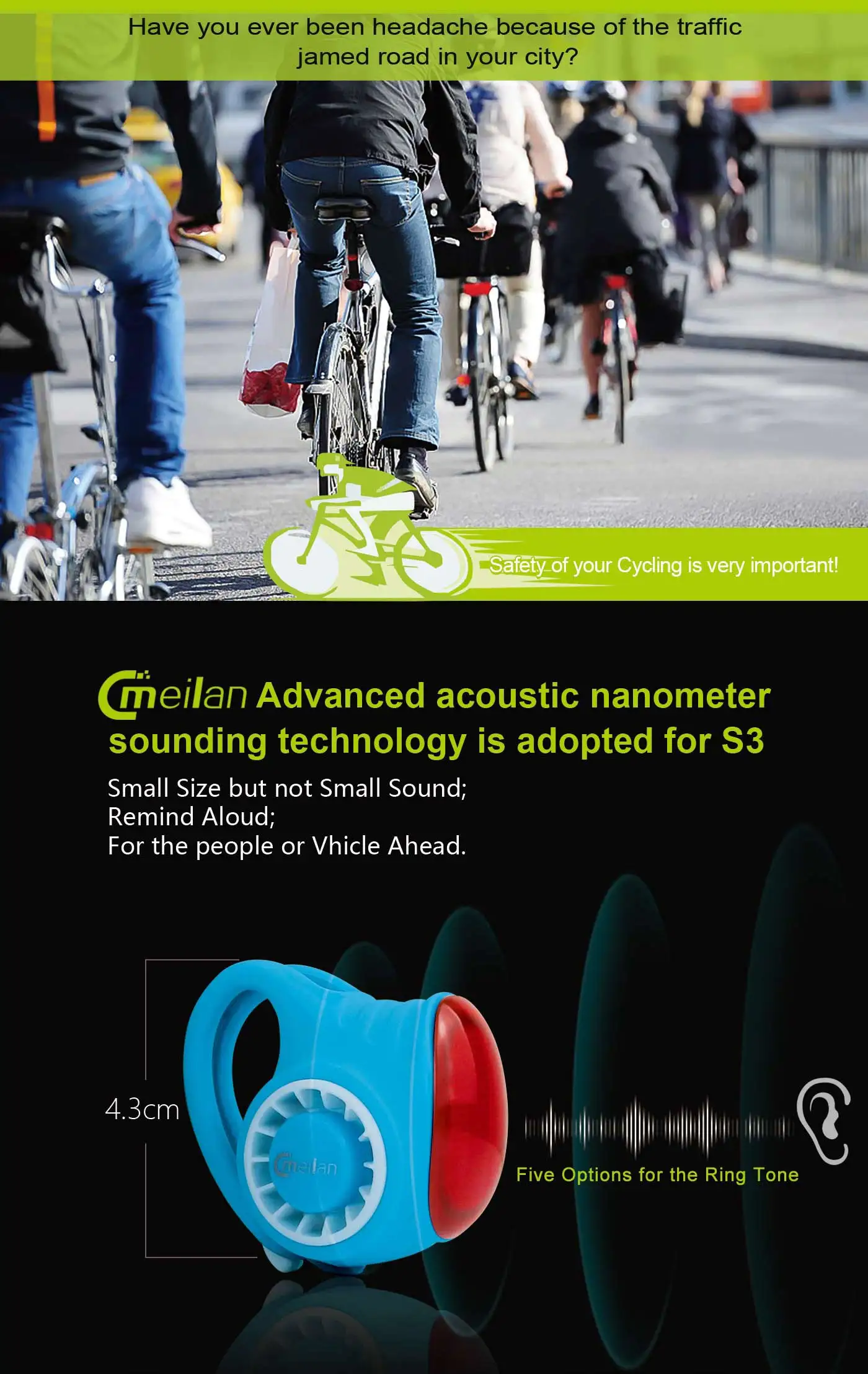 Беспроводной и умный велосипедный Звонок Meilan S3