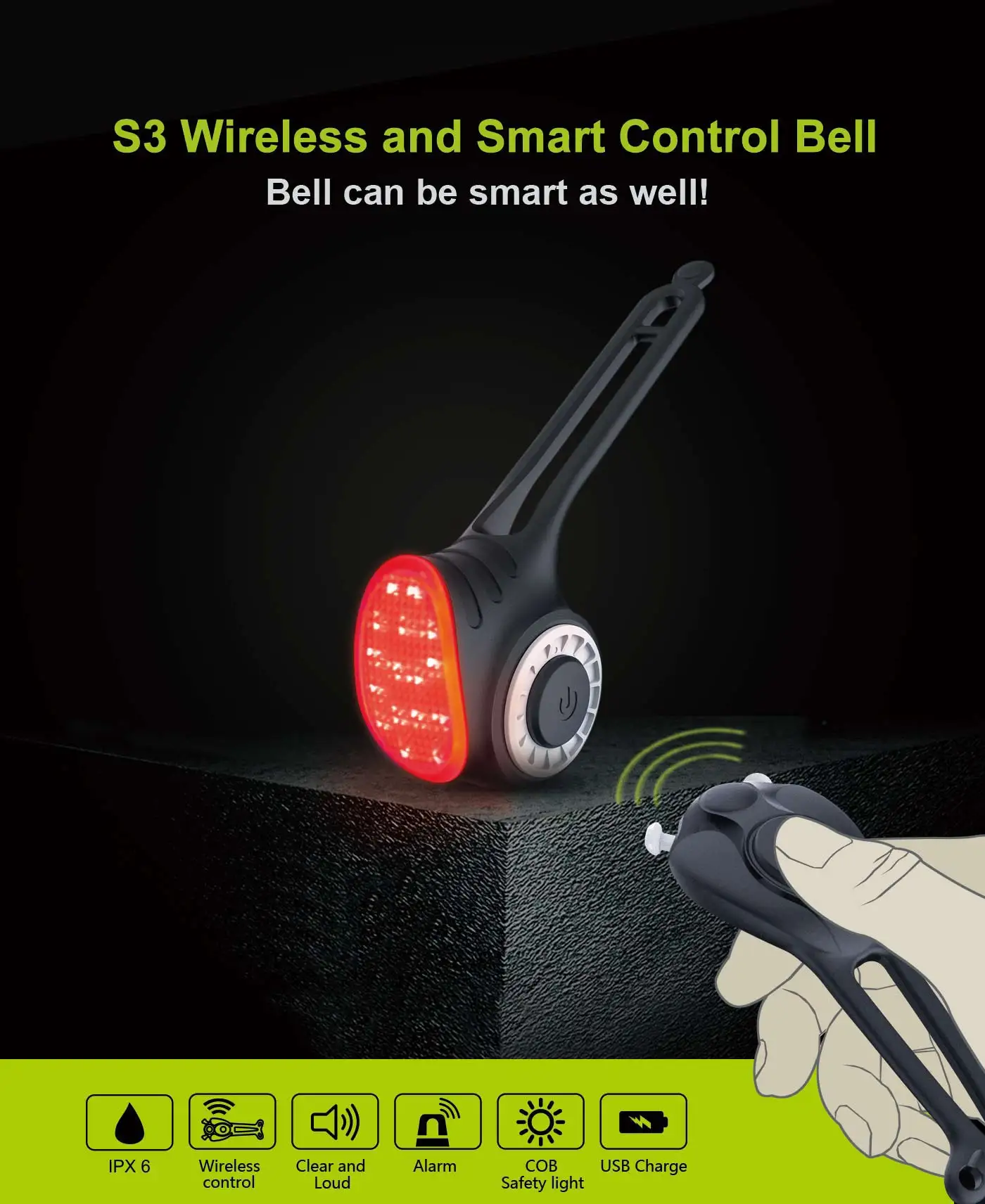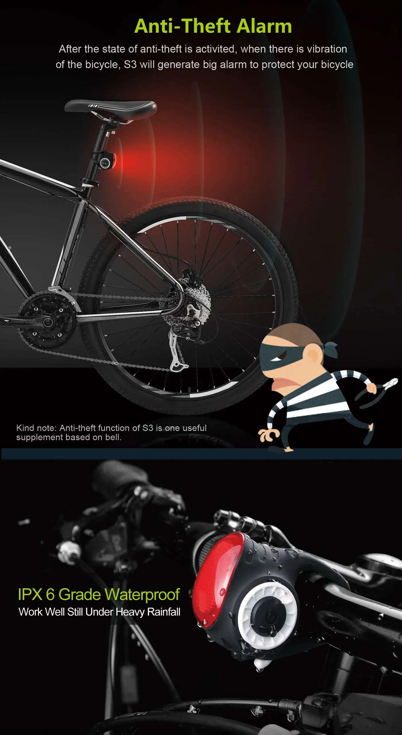 3, велосипедный предупреждающий светильник, используйте COB светильник, источник освещения, расстояние обзора больше