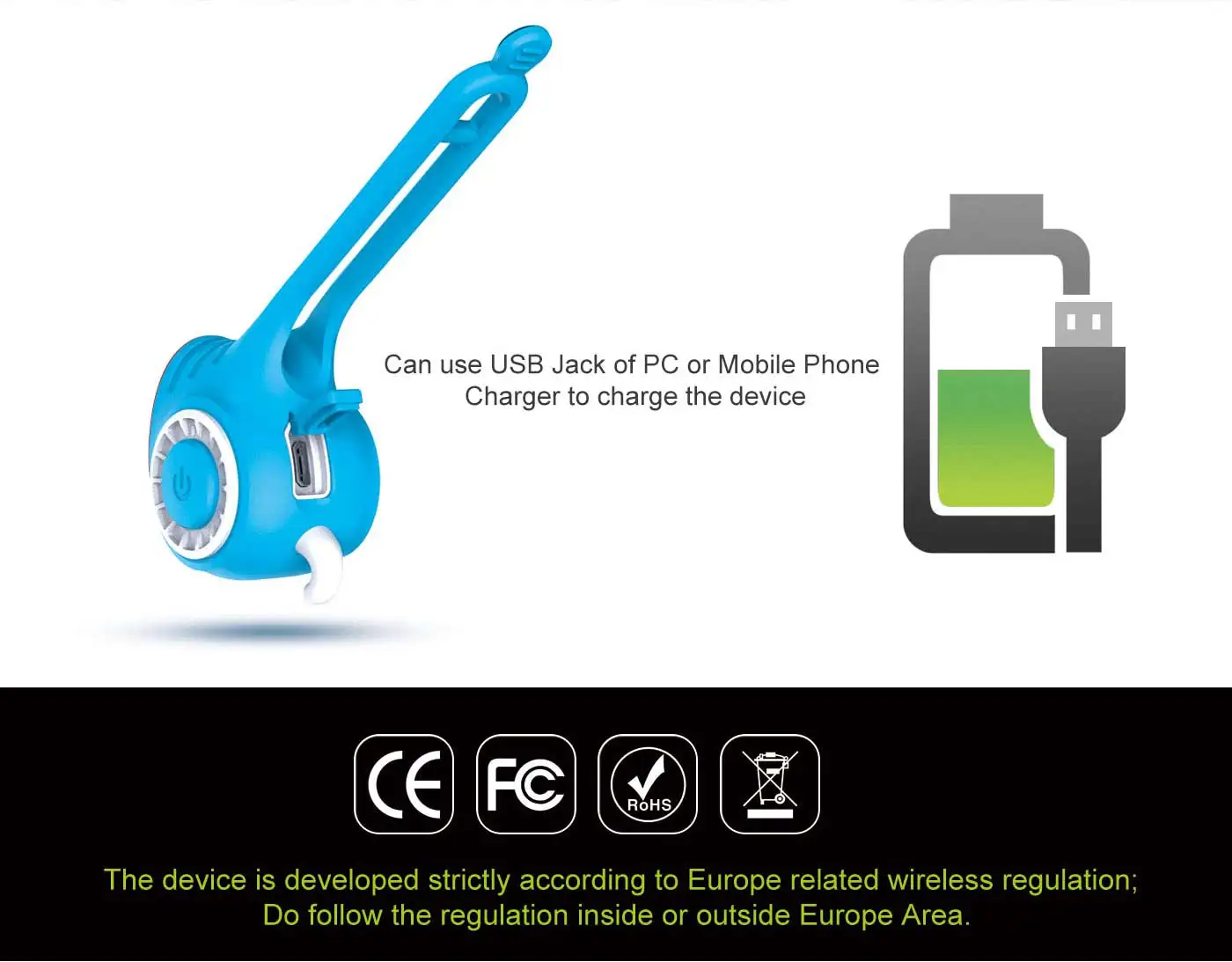 5. Перезаряжаемая батарея USB, время использования максимум 10 часов;