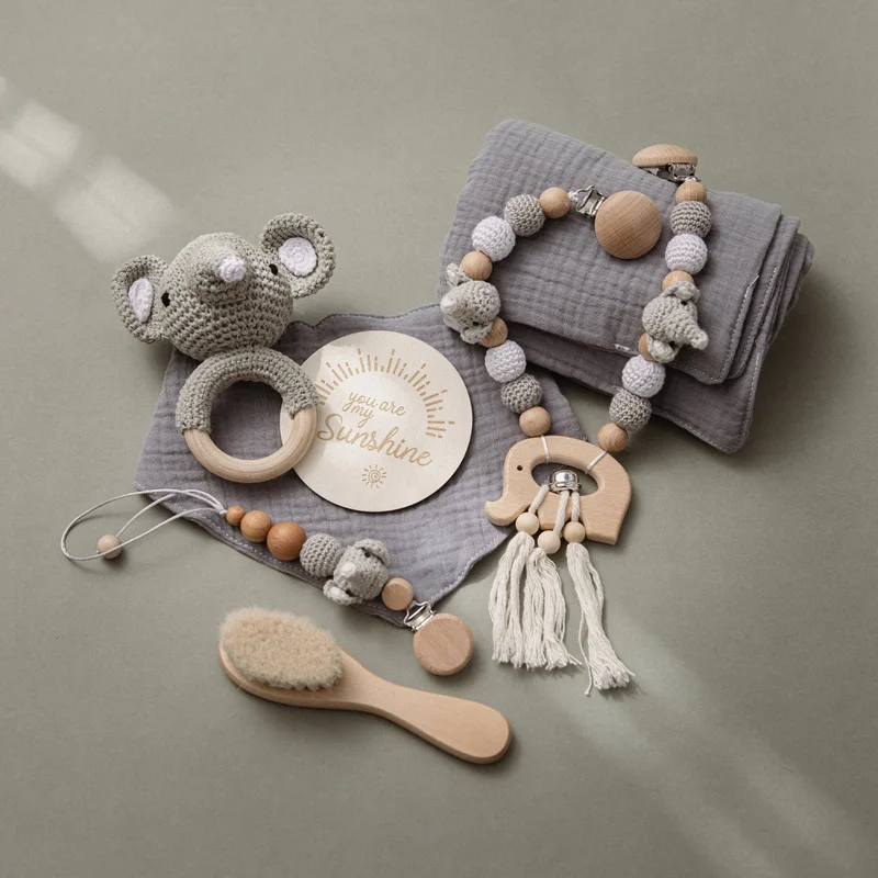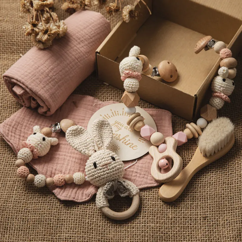 Детское банное полотенце, цепочка для соски, цепочка для коляски, Детская щетка, детская веха, детский нагрудник.