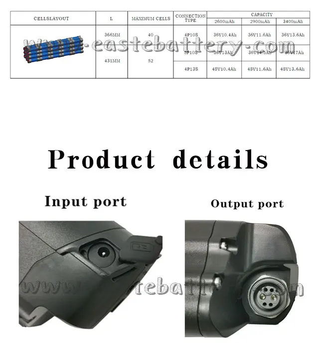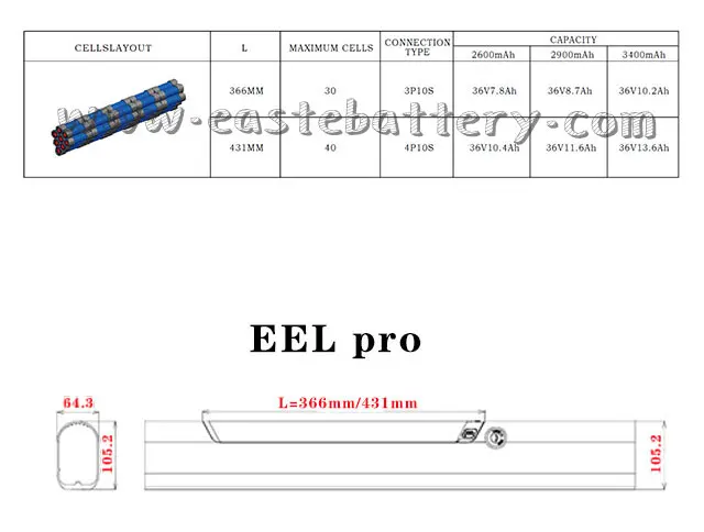 36v 10.4ah 11.6ah 13.6ah Скрытая литий-ионная угря батареяКак указано ниже: