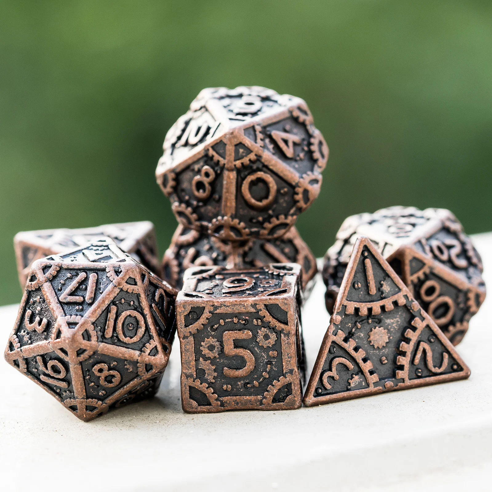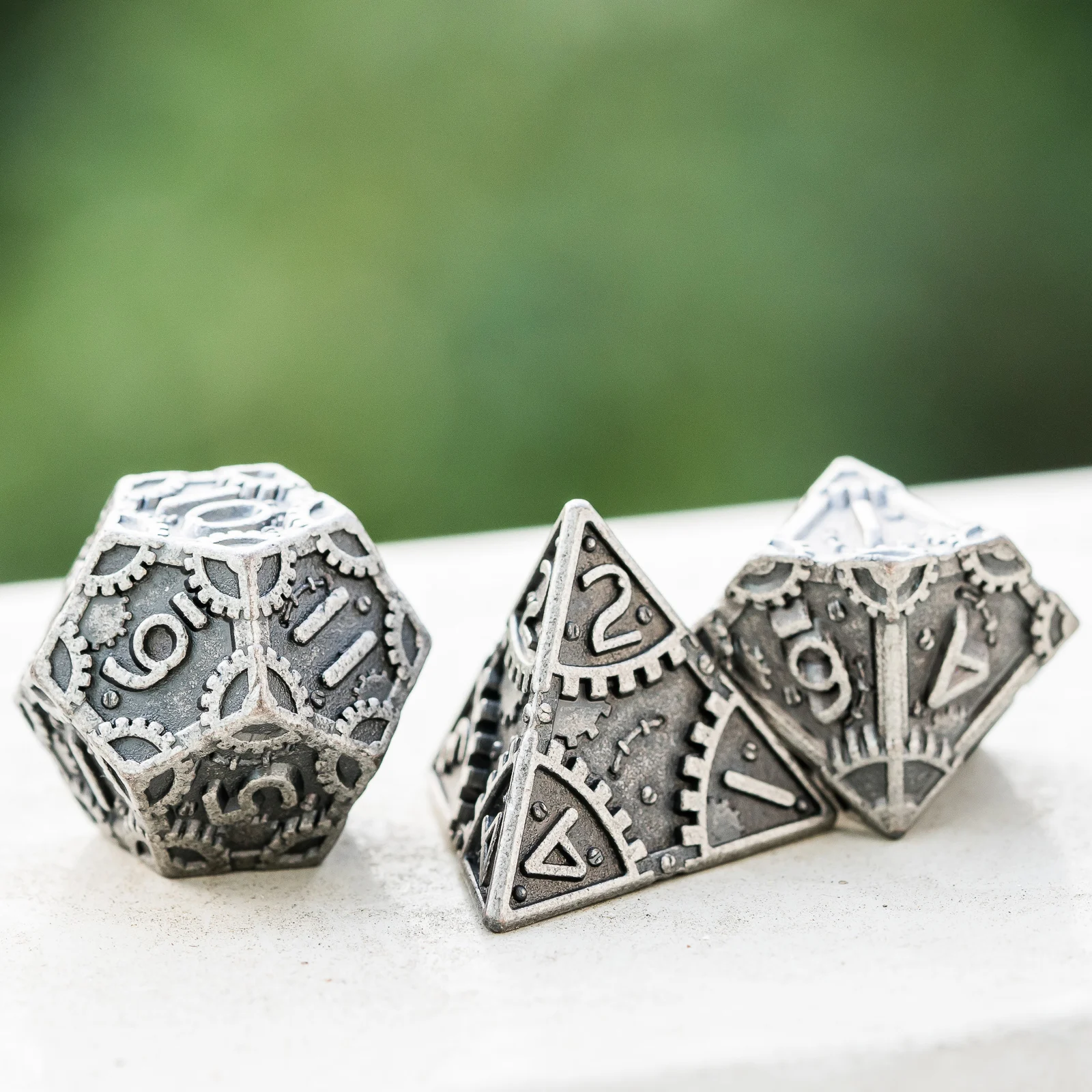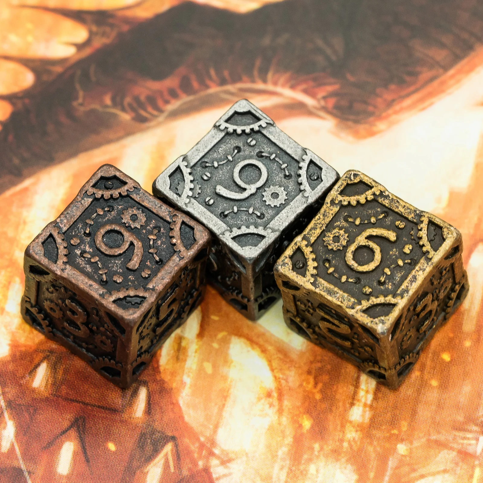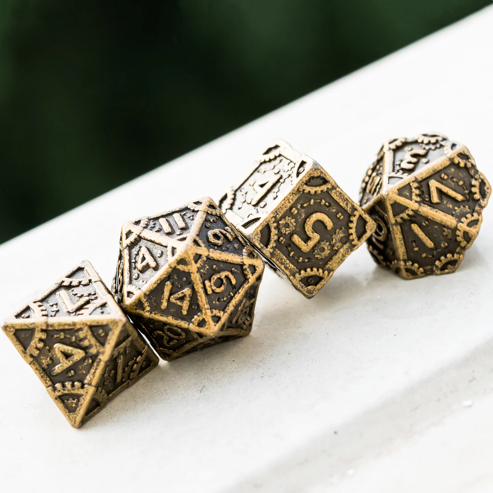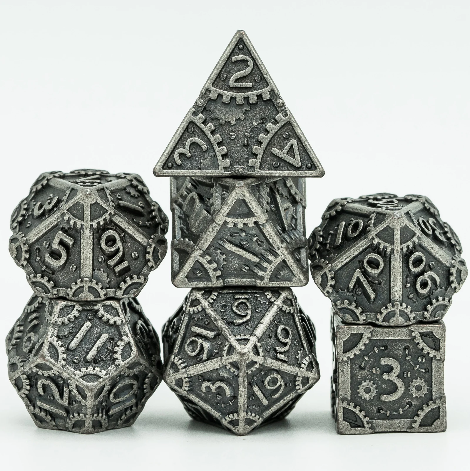 Это полный набор металлических костей, включая D4, D6, D8, D10, D12, D20 и D %.