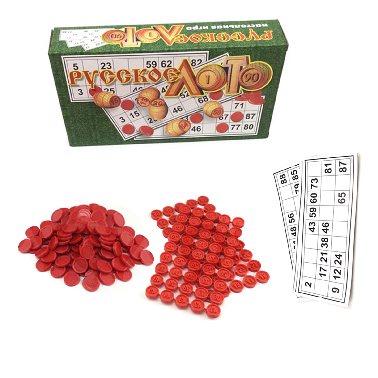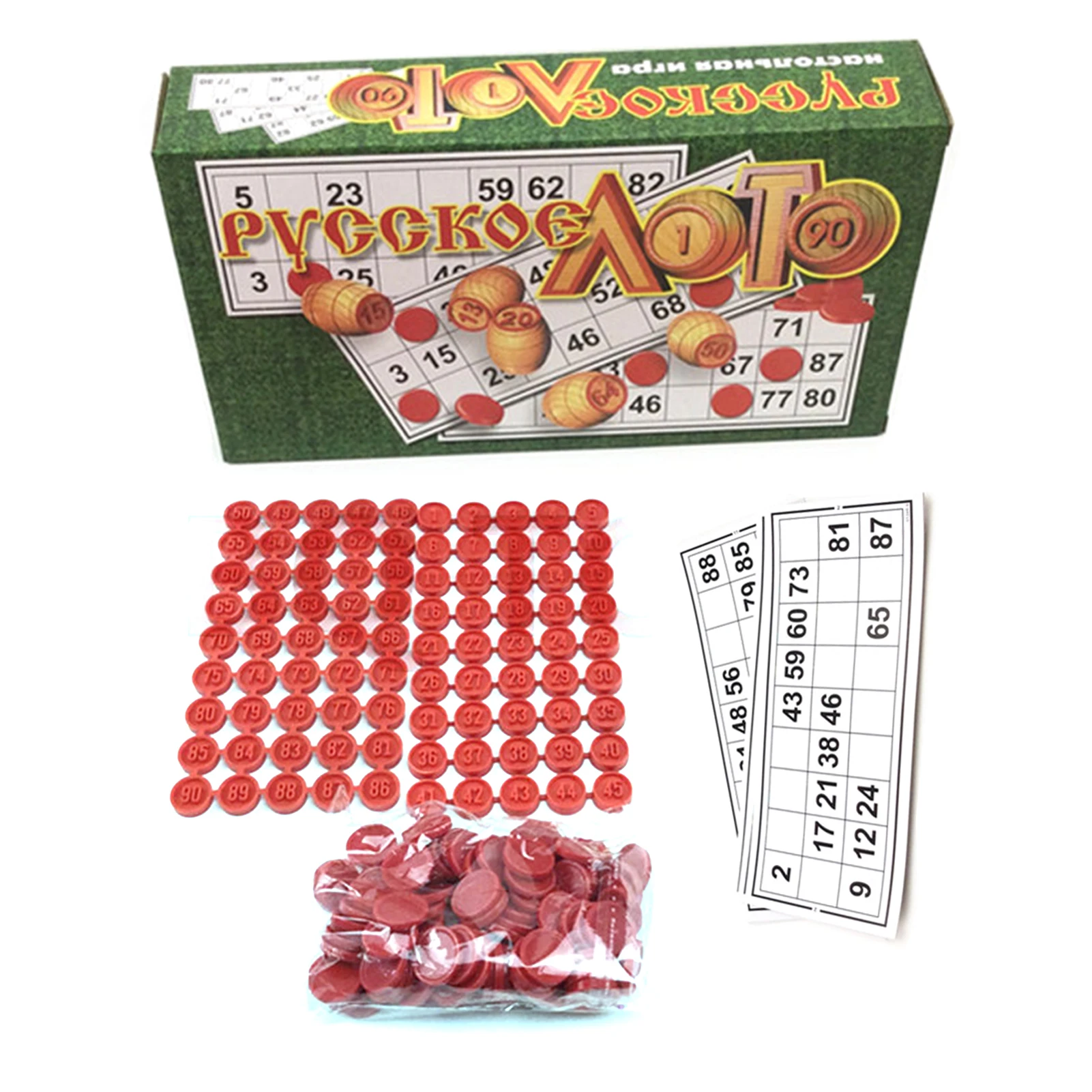 1. Приятно для удовольствия: русская карточная игра Бинго-одна из самых популярных настольных игр в России.2. Полный игровой набор: включает в себя 90 бочек (диапазон цифр 1-90), 24 карты loteria и 40 пластиковых чипов бинго.