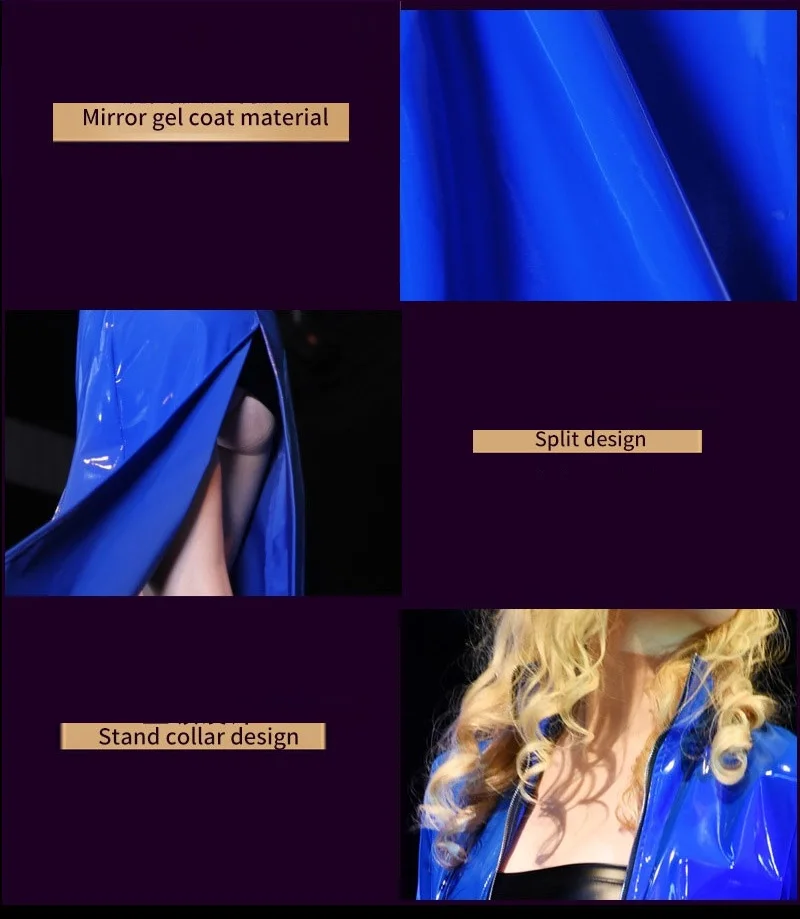 Сексуальная Женская Блестящая накидка из ПВХ с высоким разрезом, латексная Длинная ветровка, накидки, байкерские накидки, Клубная одежда для сцены, теплая куртка, Женское пальто F127