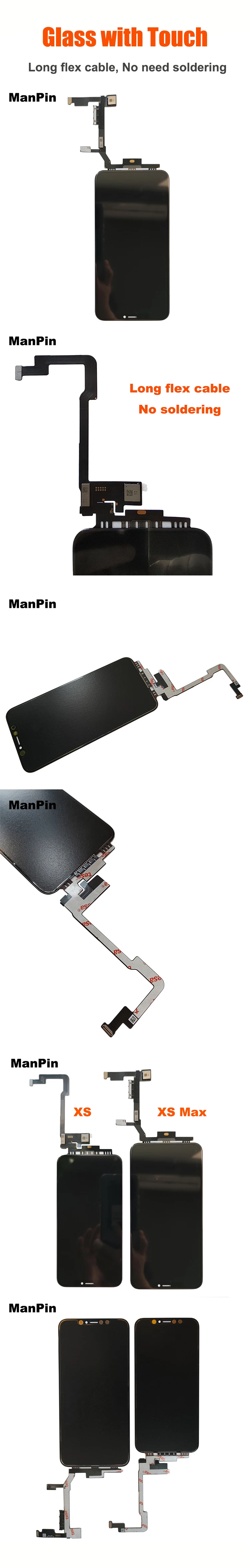 Для iPhone XS Max X LCD сенсорный экран стекло с длинным гибким кабелем без пайки Передняя панель дисплея объектив Запасные Запчасти для ремонта