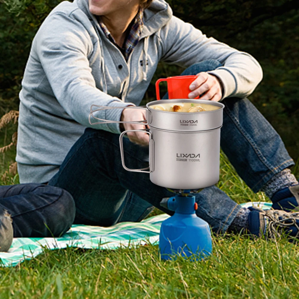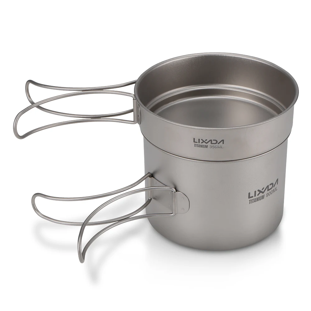 Этот варочный набор включает кастрюлю объемом 900 мл и кастрюлю объемом 350 мл, оба из которых изготовлены из материала титаниум, легкие и устойчивые к коррозии. Идеально подходит для кемпинга, пеших прогулок, альпинизма и других видов активного отдыха.