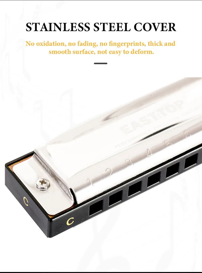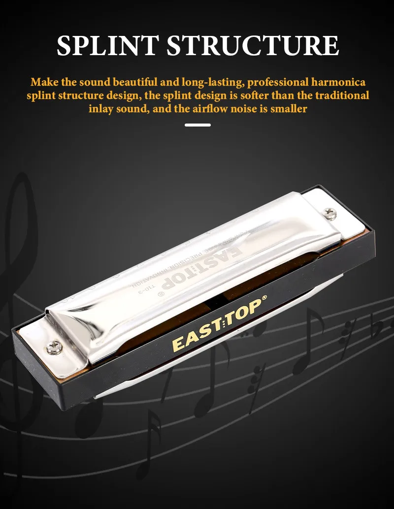Профессиональная Губная гармошка, способный преодолевать Броды для взрослых-Восток Топ 10 отверстие Профессиональный диатоническая гармоника, подходит для блюз, фолк, рок, кантри, джаз и т. Д. Отлично подходит для профессиональная Губная гармошка игроков и новичков. Эта профессиональная блюзовая гармошка имеет тонкое мастерство, красивый внешний вид, точный тон и отзывчивость.